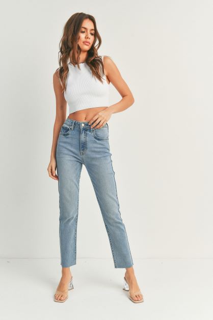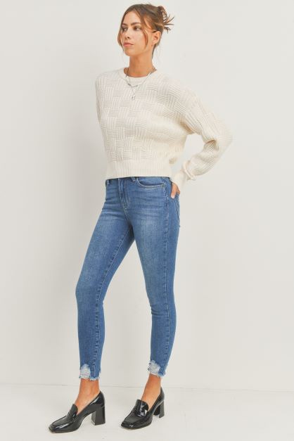 HR ANKLE SKINNY JEANS WITH DESTROYED HEM