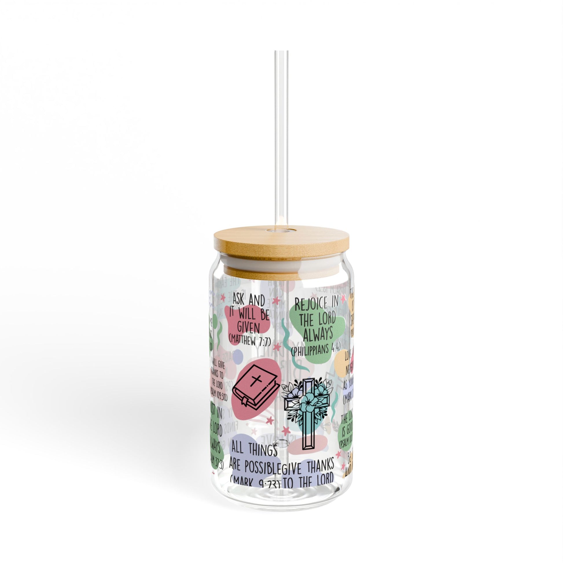 Sip on some divine positivity with our Bible Affirmations Sipper Glass! This 16oz glass is adorned with uplifting Bible affirmations to help you stay motivated throughout the day. Perfect for a refreshing drink or as a unique gift for a friend. Savor the sips and the scriptures!