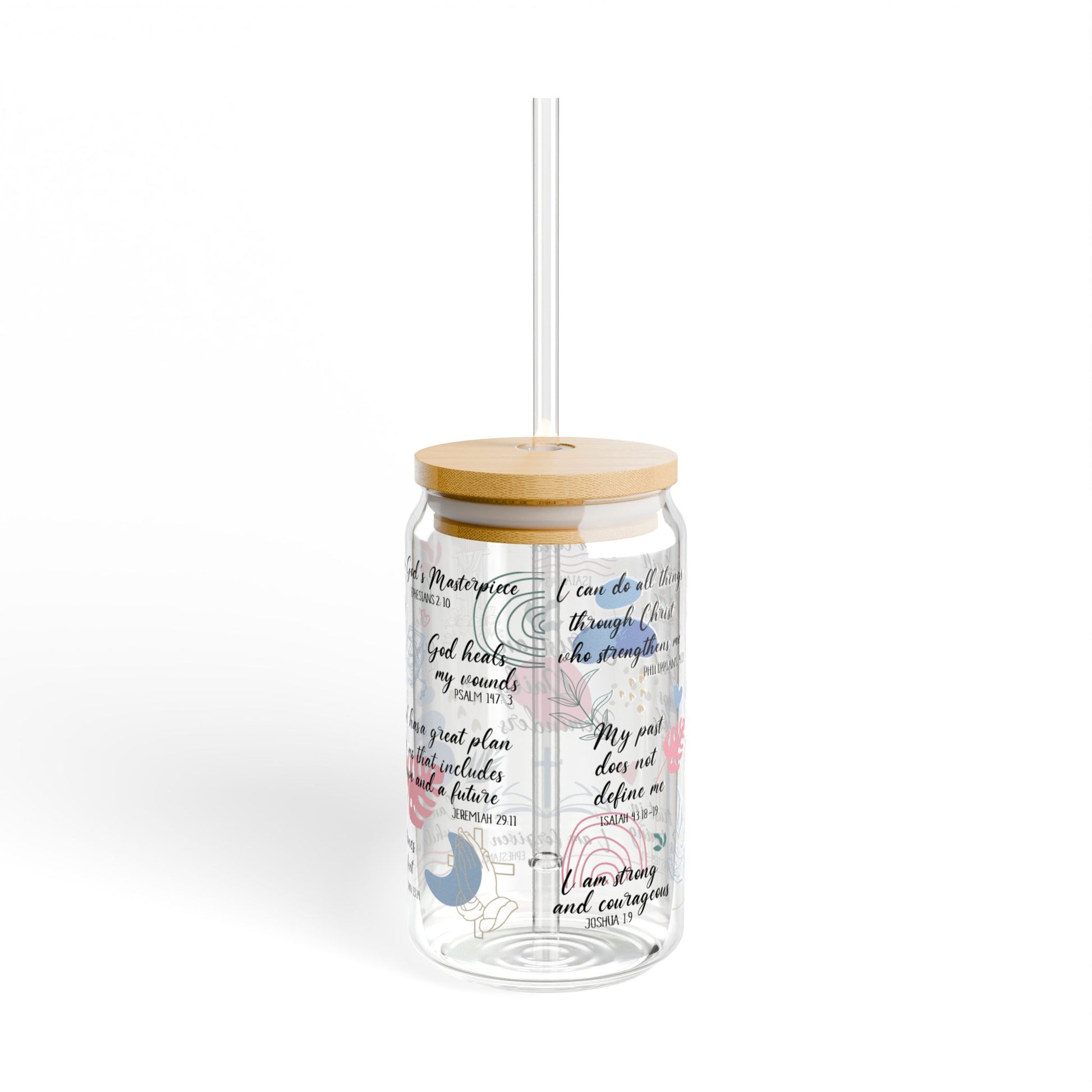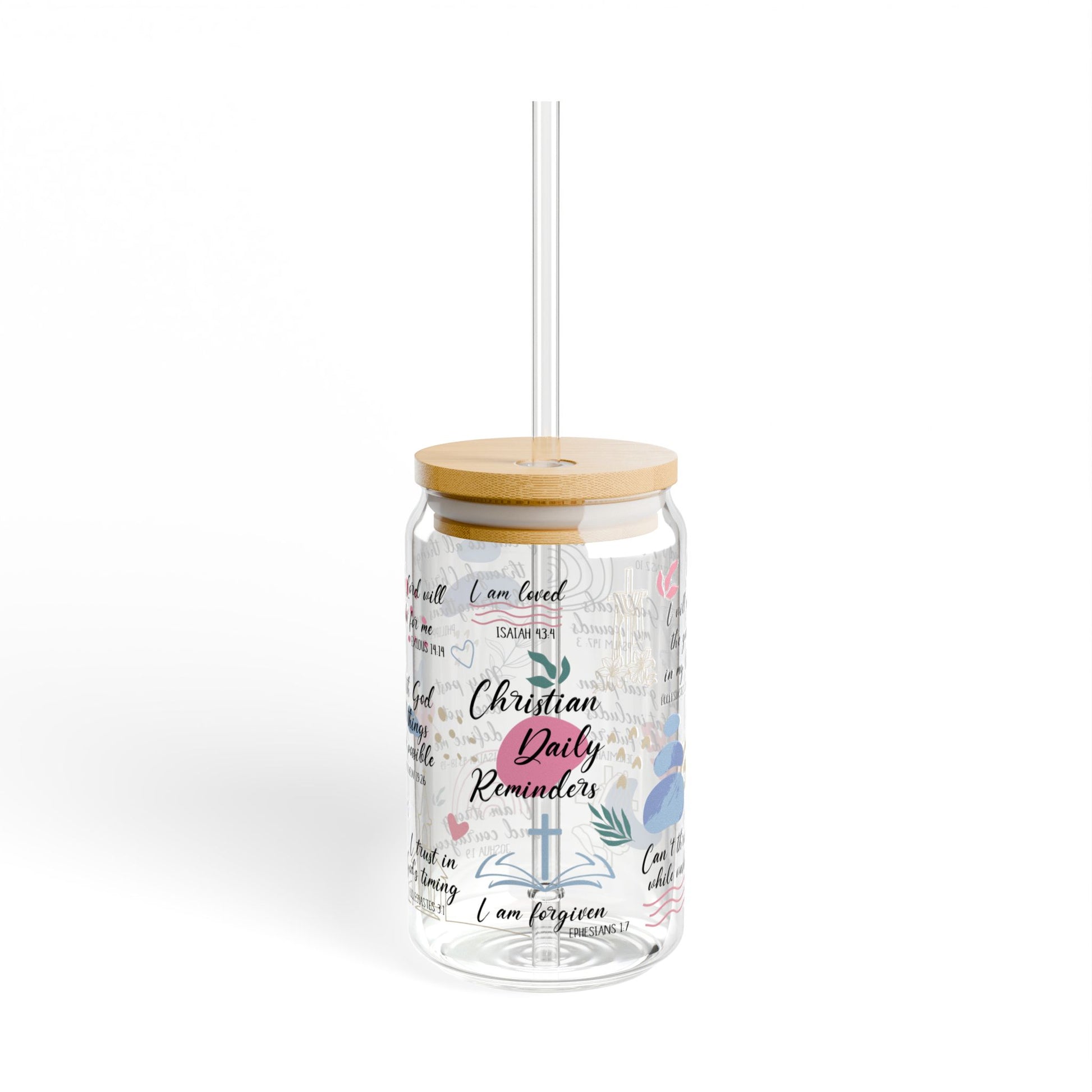 Quench your thirst and your spirit with this 16oz Christian Daily Reminders Sipper Glass. Featuring inspirational daily reminders, this quirky glass will keep you motivated throughout the day. Stay hydrated and stay faithful with this unique sipper glass.
