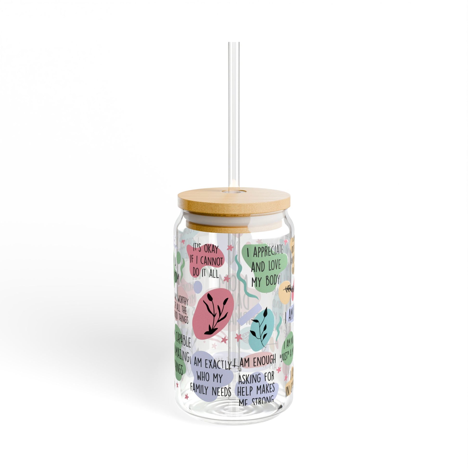 Stay hydrated and on top of your game with the Mom Daily Reminders Sipper Glass. With quirky and playful reminders, this 16oz glass will make sure you don't forget to take care of yourself. Cheers to being the best mom you can be! (Contains: One 16oz Mom Daily Reminders Sipper Glass)