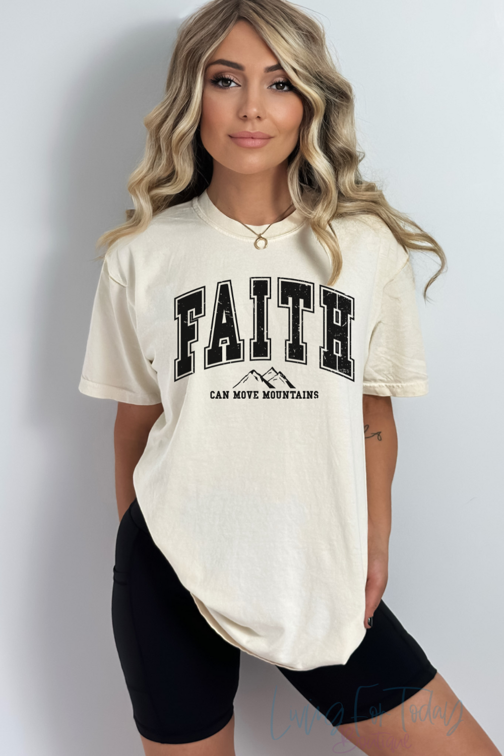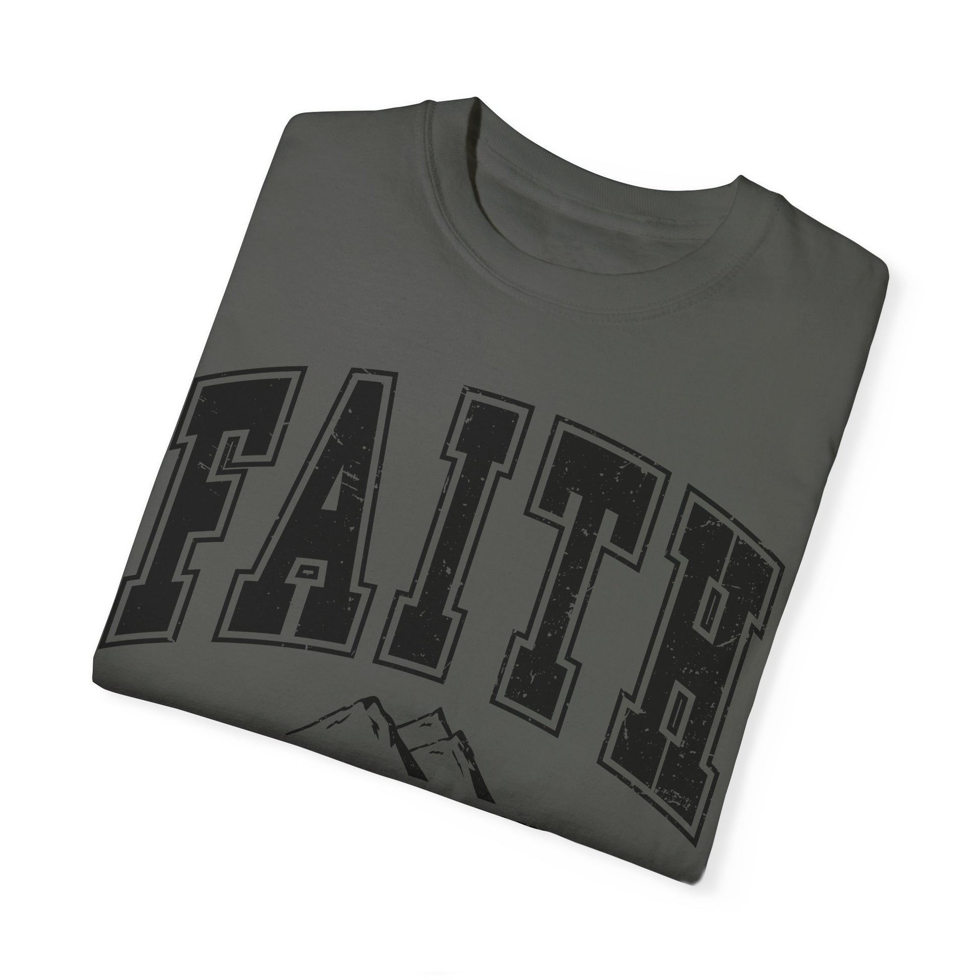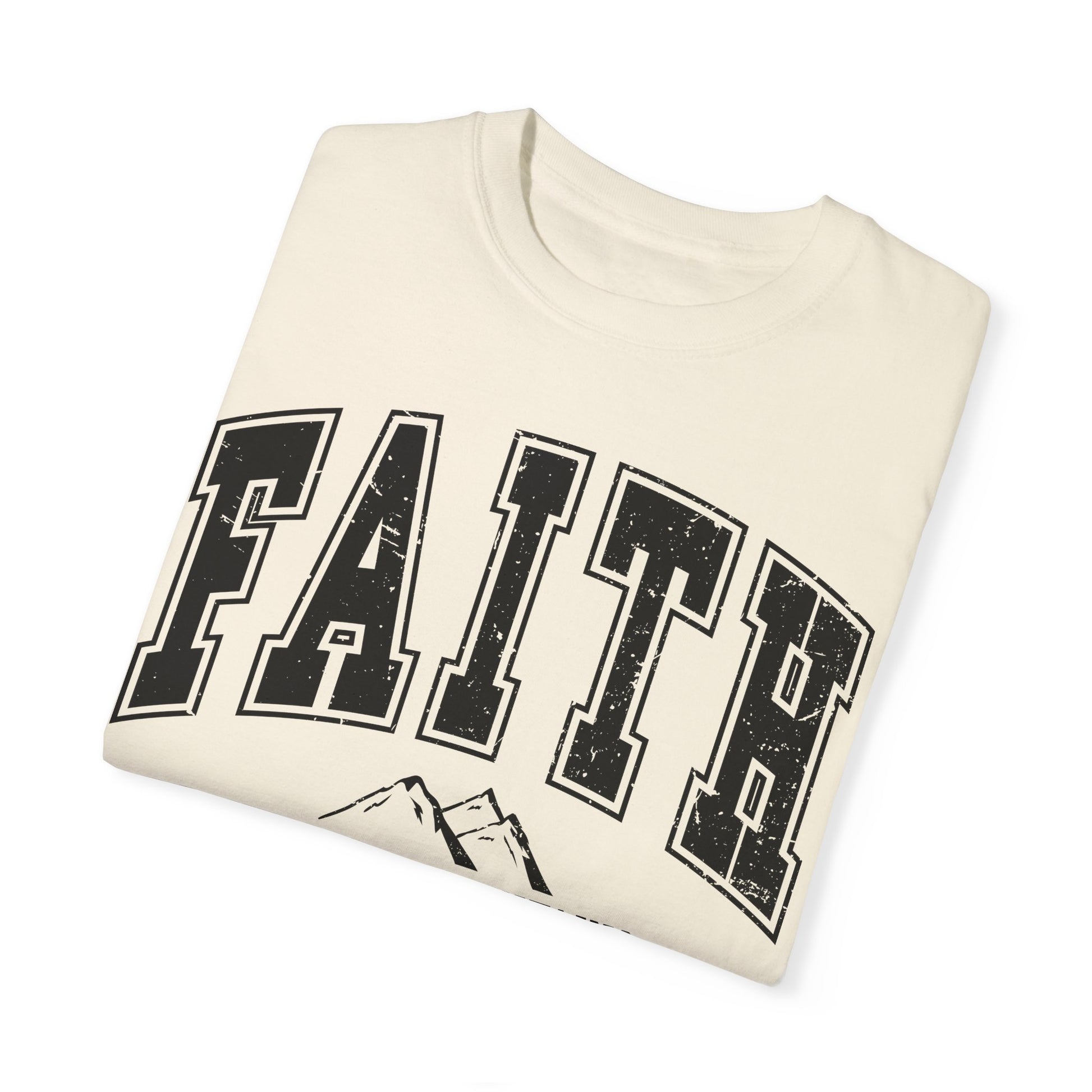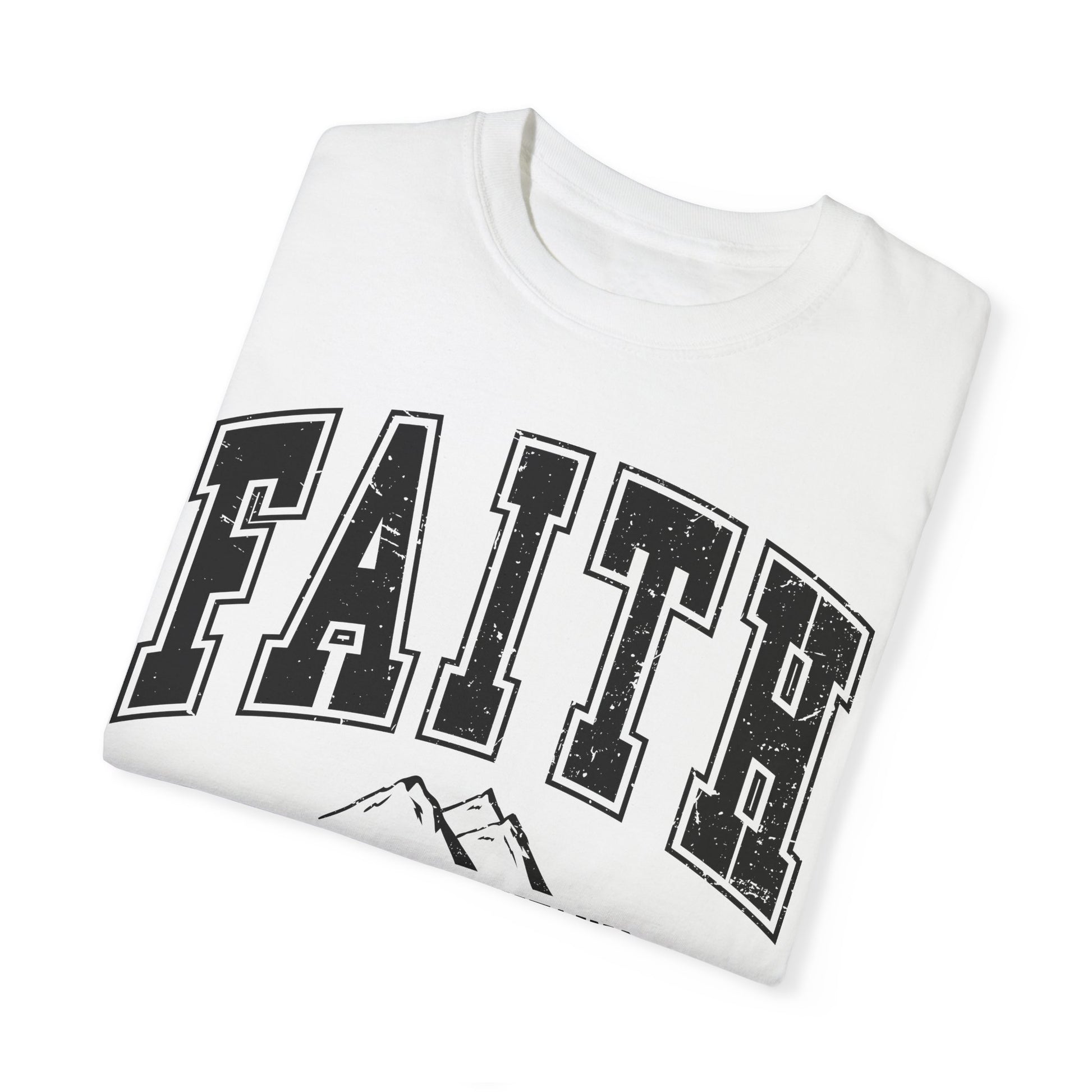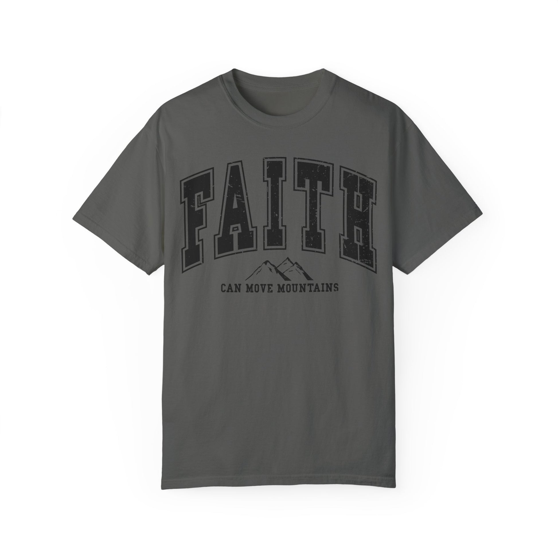 Show your faith with this distressed “Faith” comfort color tee and in so many colors to choose from.