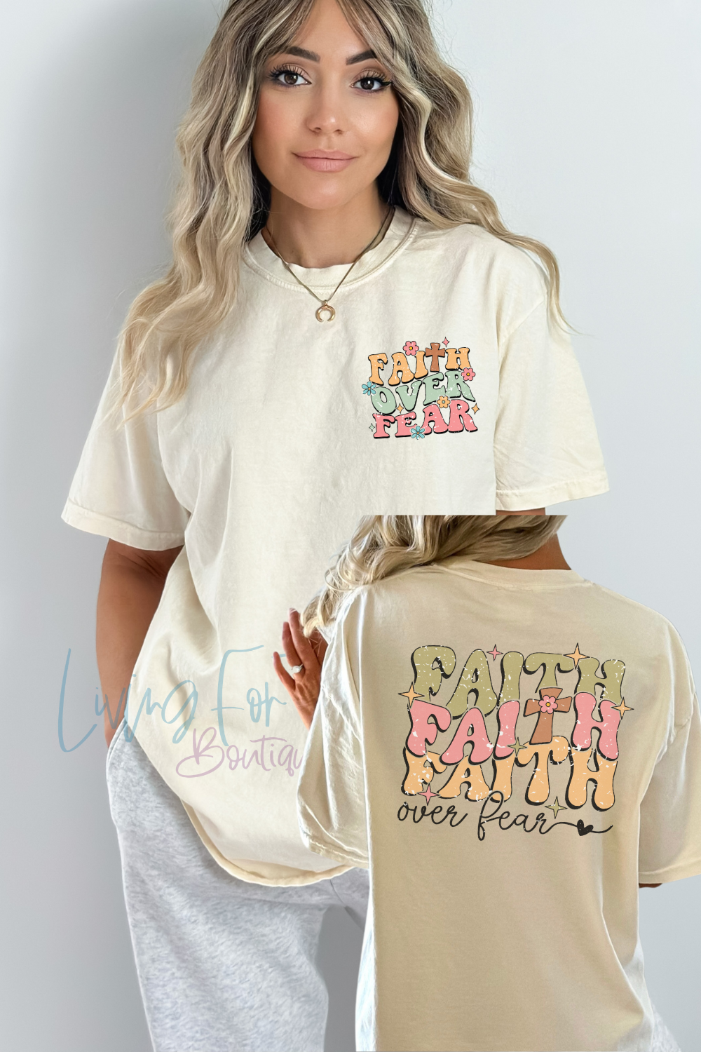 Embrace your faith and overcome your fears with our Faith Over Fear Christian TShirt. Let this powerful message be a reminder that with faith, you can conquer anything. Wear it proudly and inspire others to do the same.