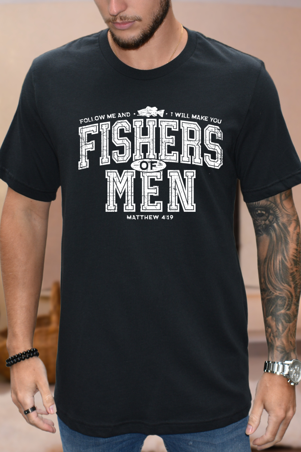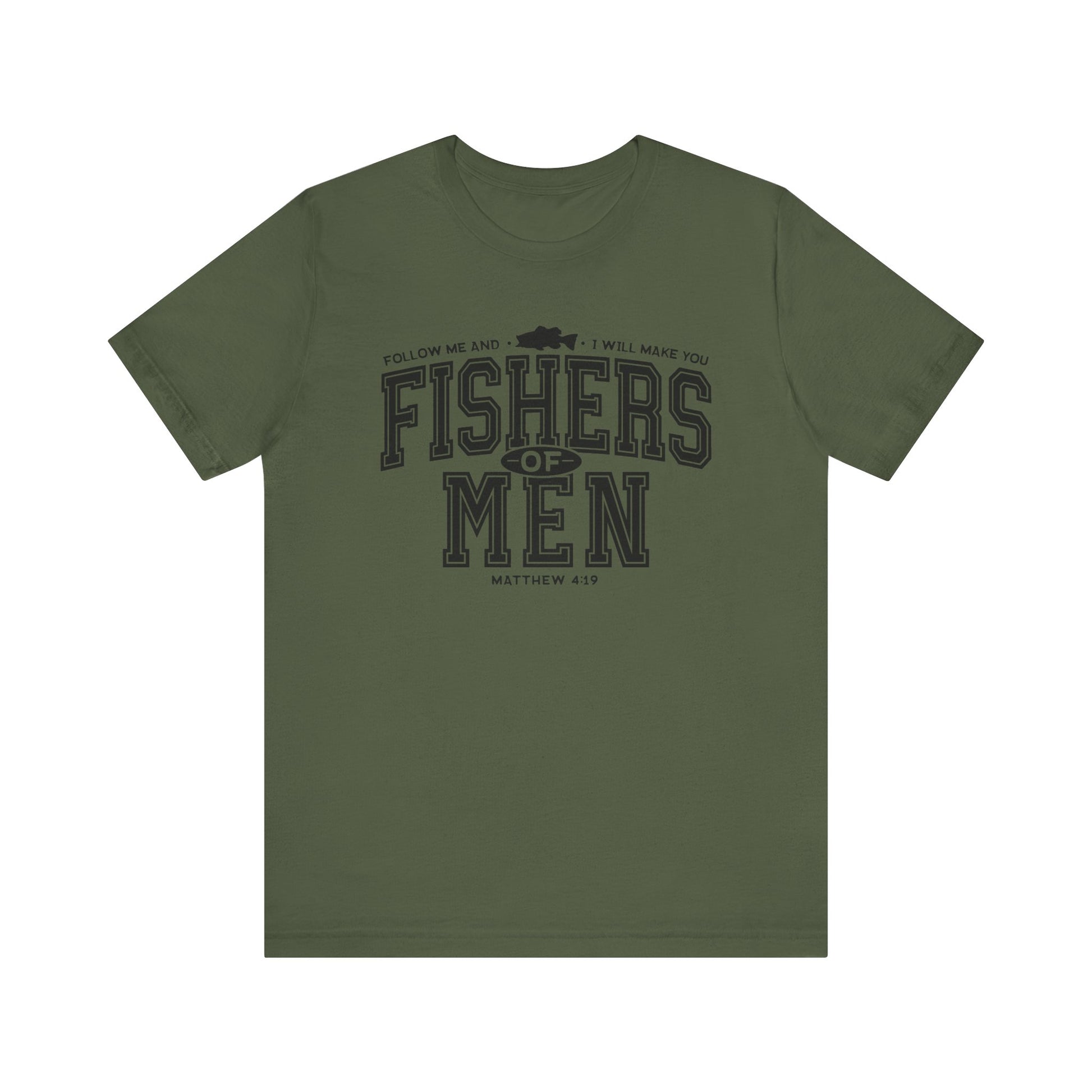 Join the ranks of the faithful with our Fishers of Men Tshirt. Proudly display your commitment to Jesus and be a guiding light for other Christian men. Show the power of following in His footsteps with this inspiring shirt.