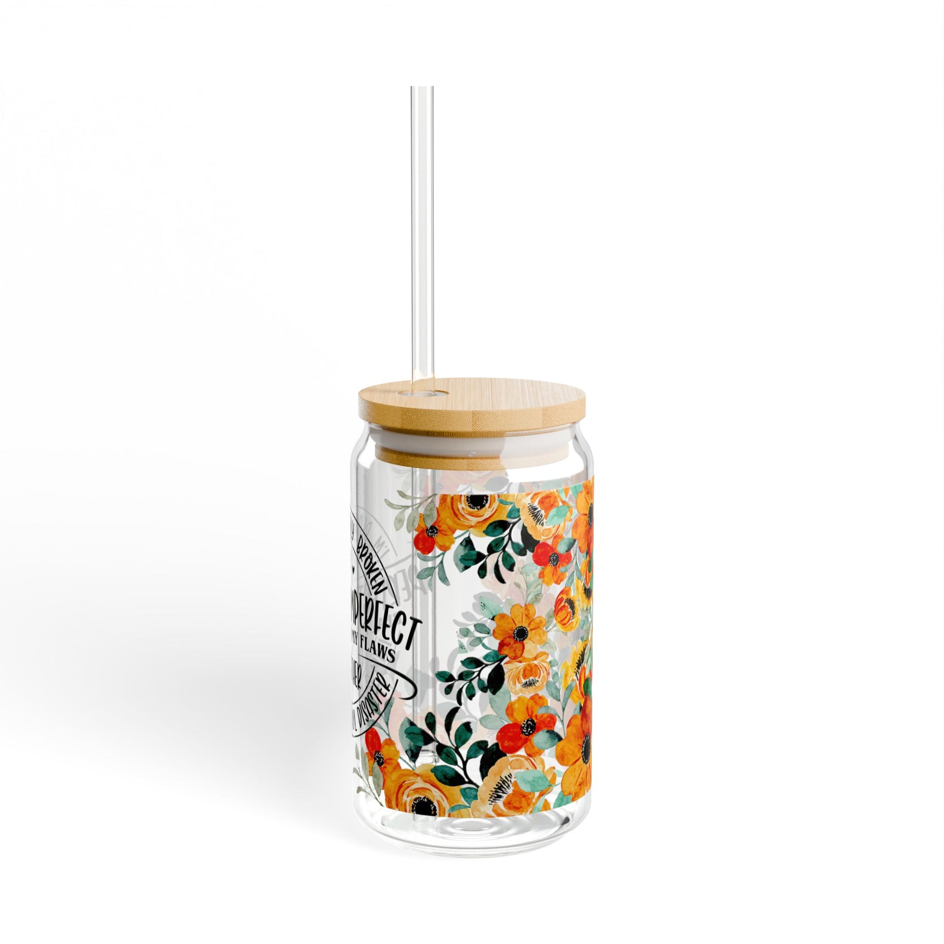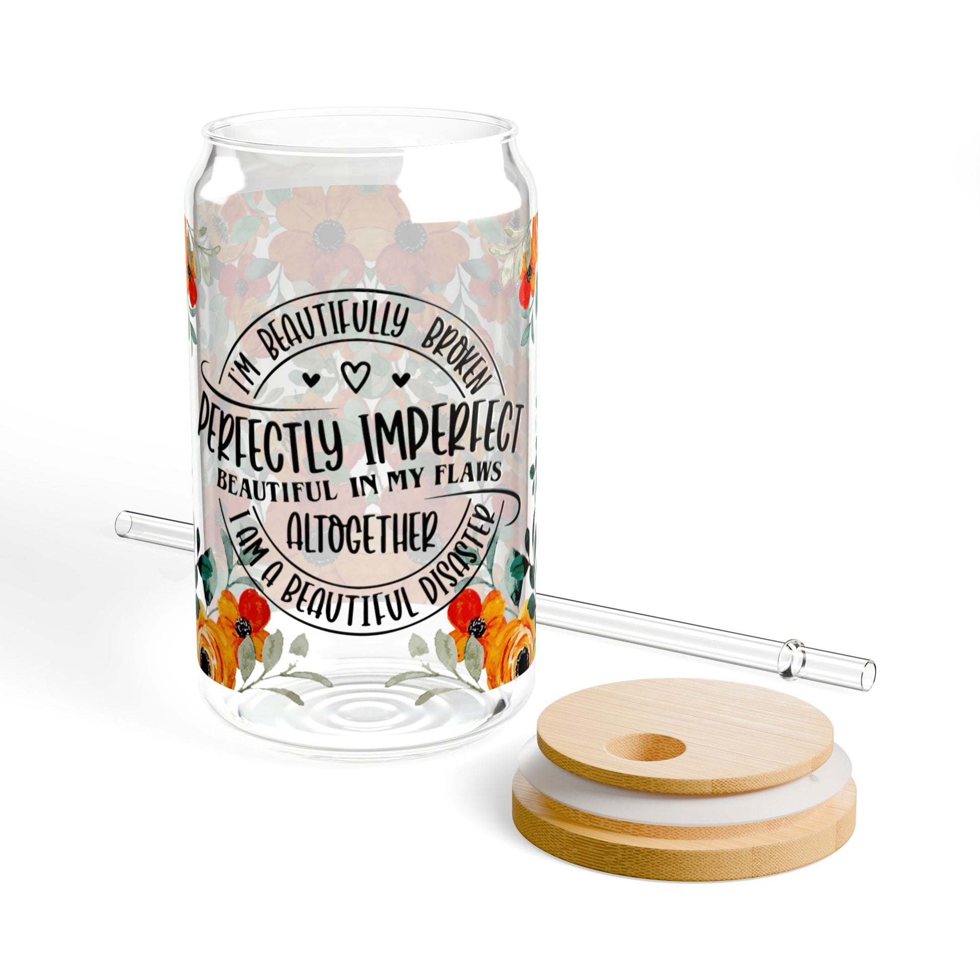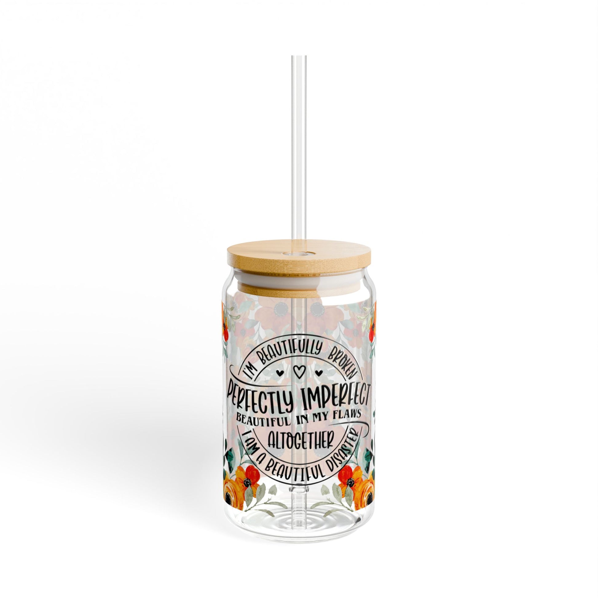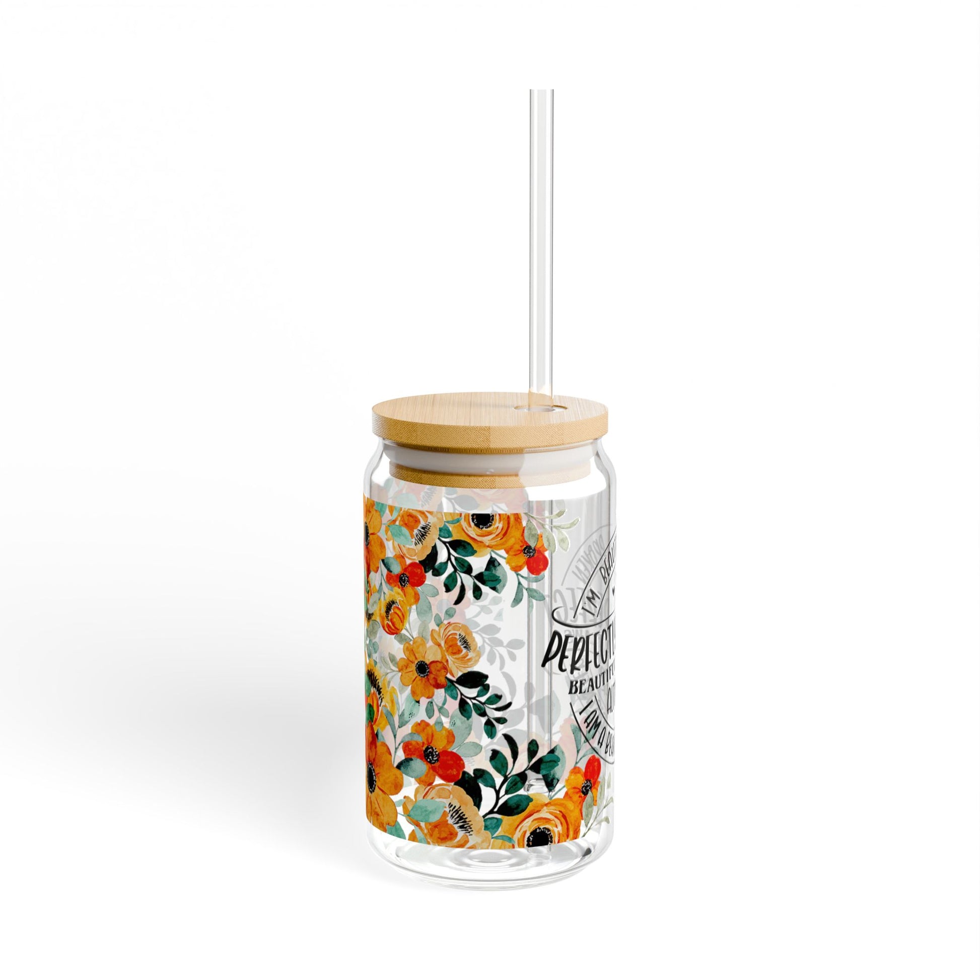 Sip your favorite beverage in style with our Floral Perfectly Imperfect Sipper Glass! This 16oz glass features a quirky floral design and a playful reminder that it's okay to be imperfect. Perfect for adding a touch of fun to your day while enjoying your drink. Cheers to embracing imperfections!