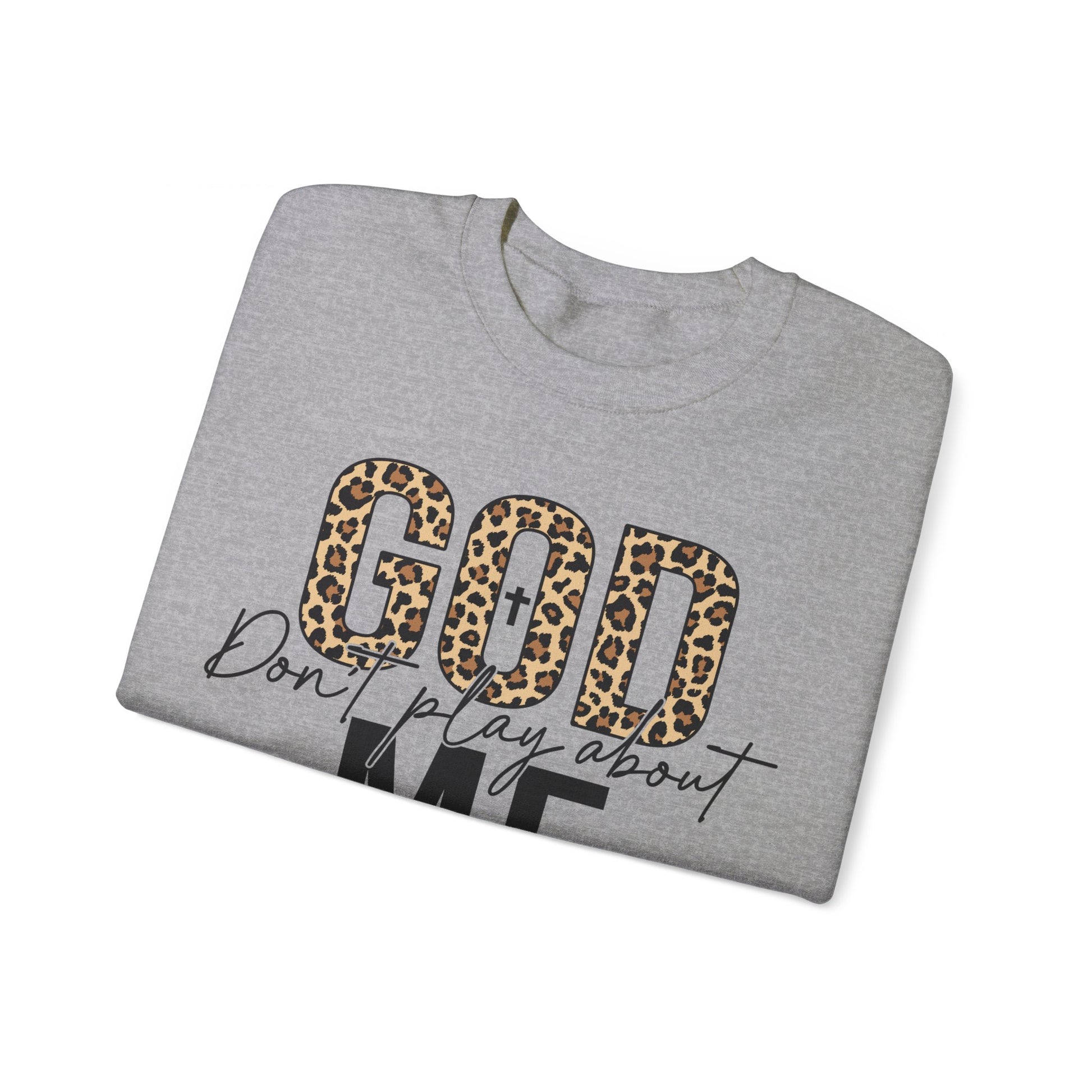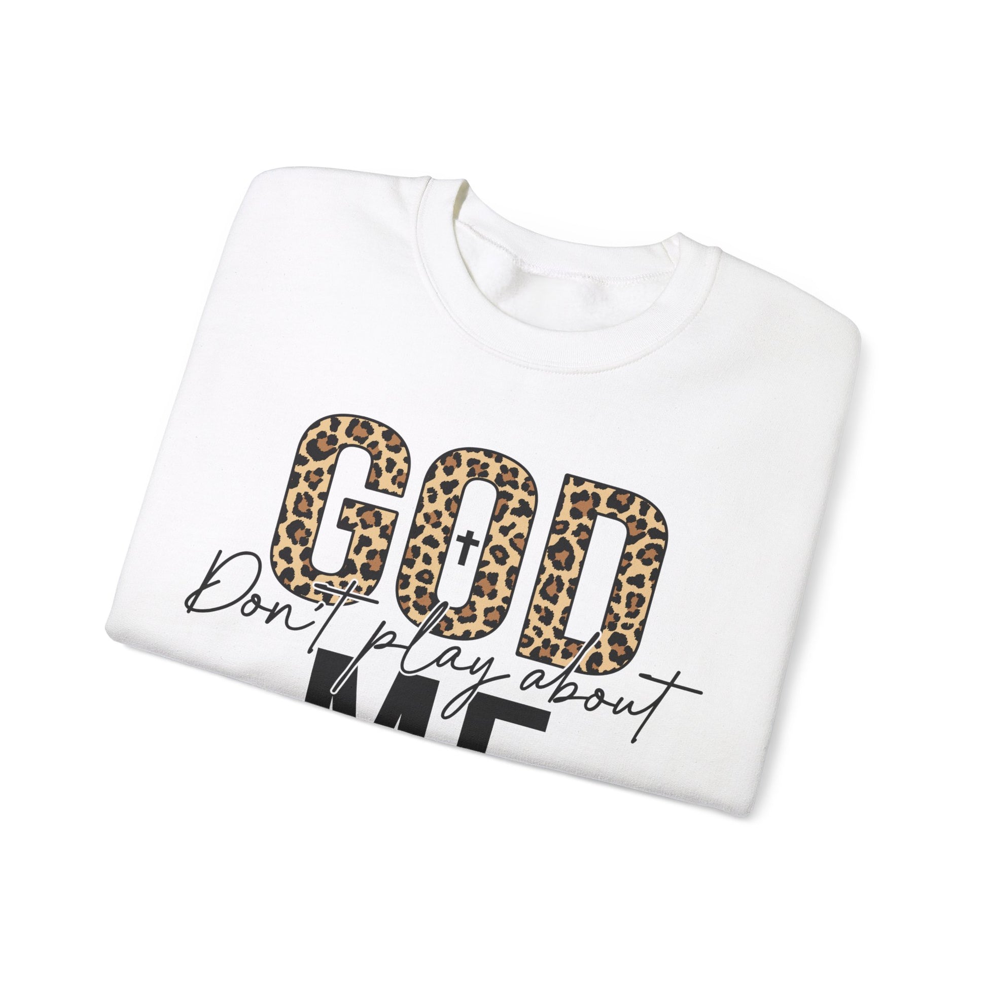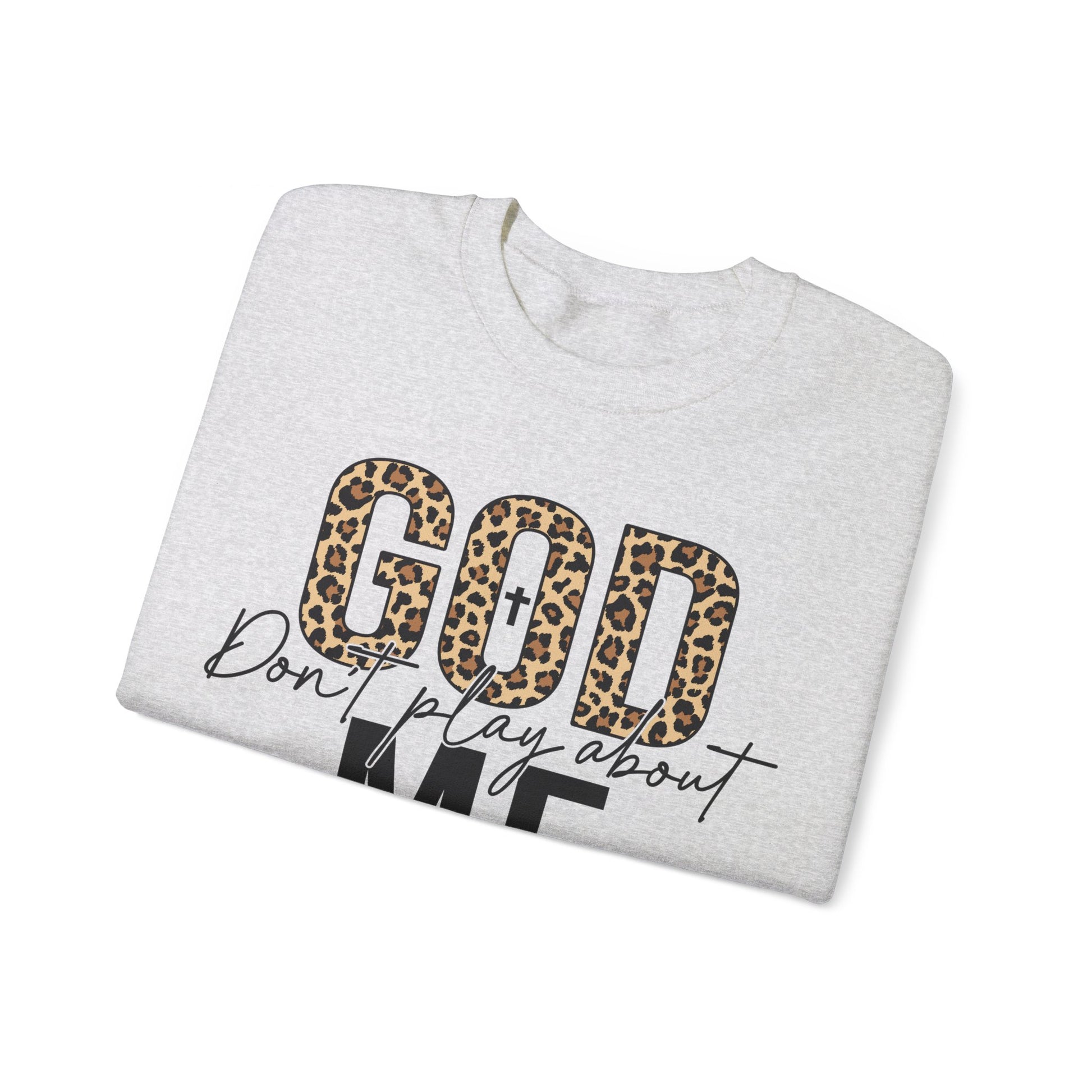 Declare your divinely protected status with the quirky God Dont Play About Me sweatshirt. With this catchy phrase emblazoned on the front, you'll feel confident and empowered to take on the day. Stay cozy and stylish while making a statement in this one-of-a-kind sweatshirt. Praise be!