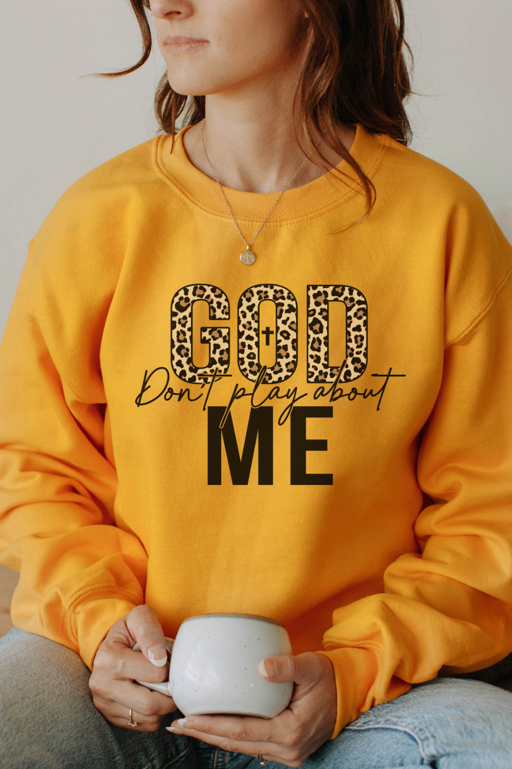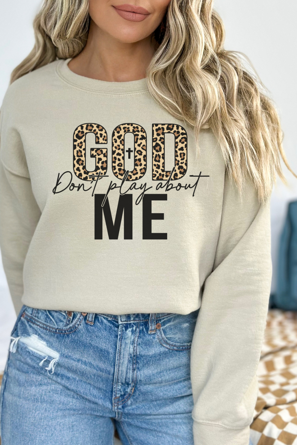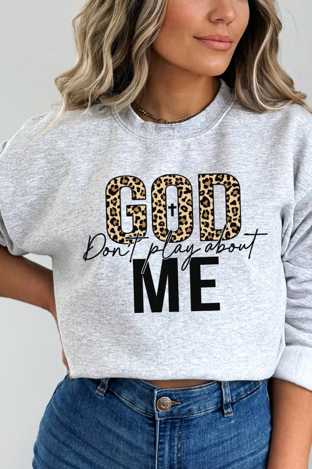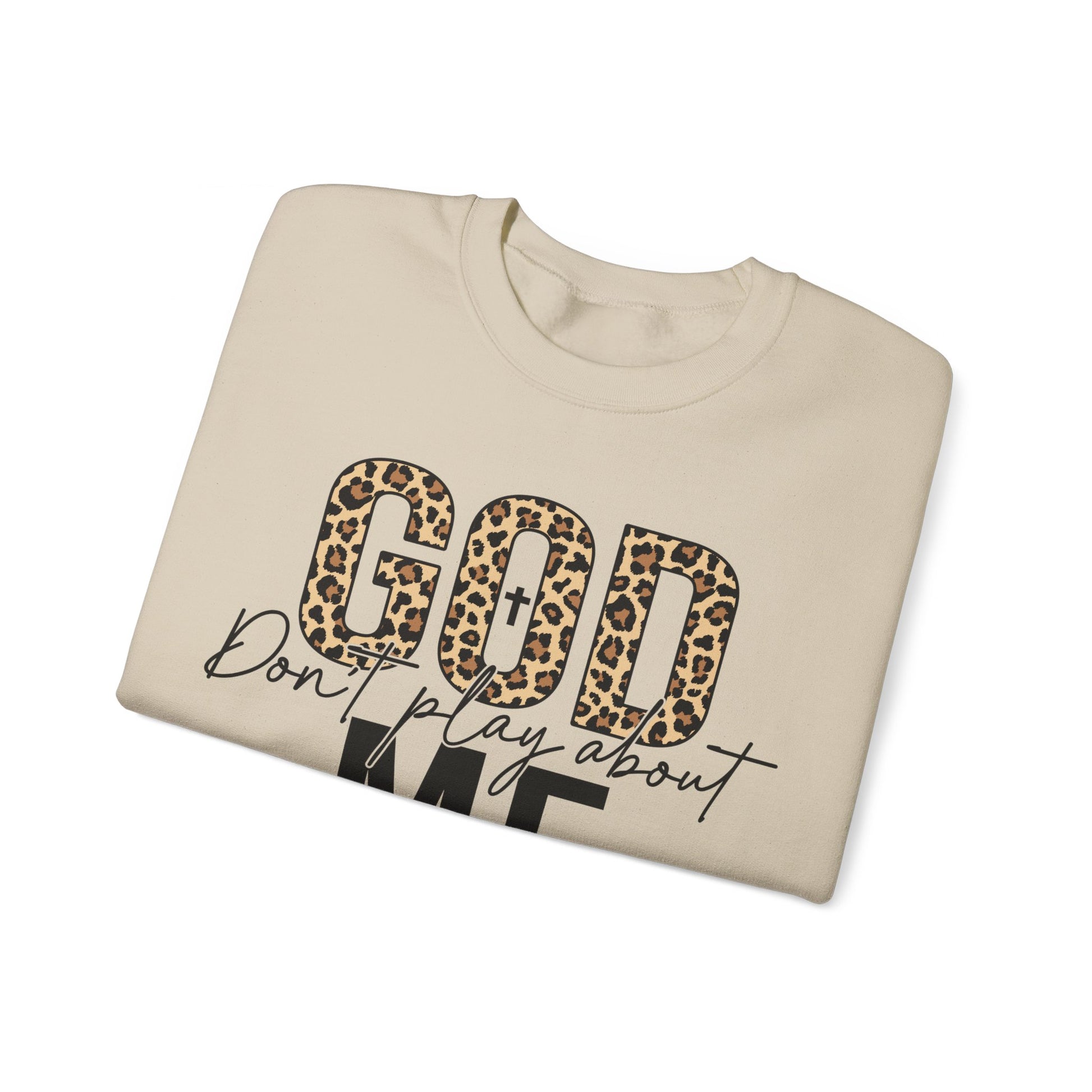 Declare your divinely protected status with the quirky God Dont Play About Me sweatshirt. With this catchy phrase emblazoned on the front, you'll feel confident and empowered to take on the day. Stay cozy and stylish while making a statement in this one-of-a-kind sweatshirt. Praise be!