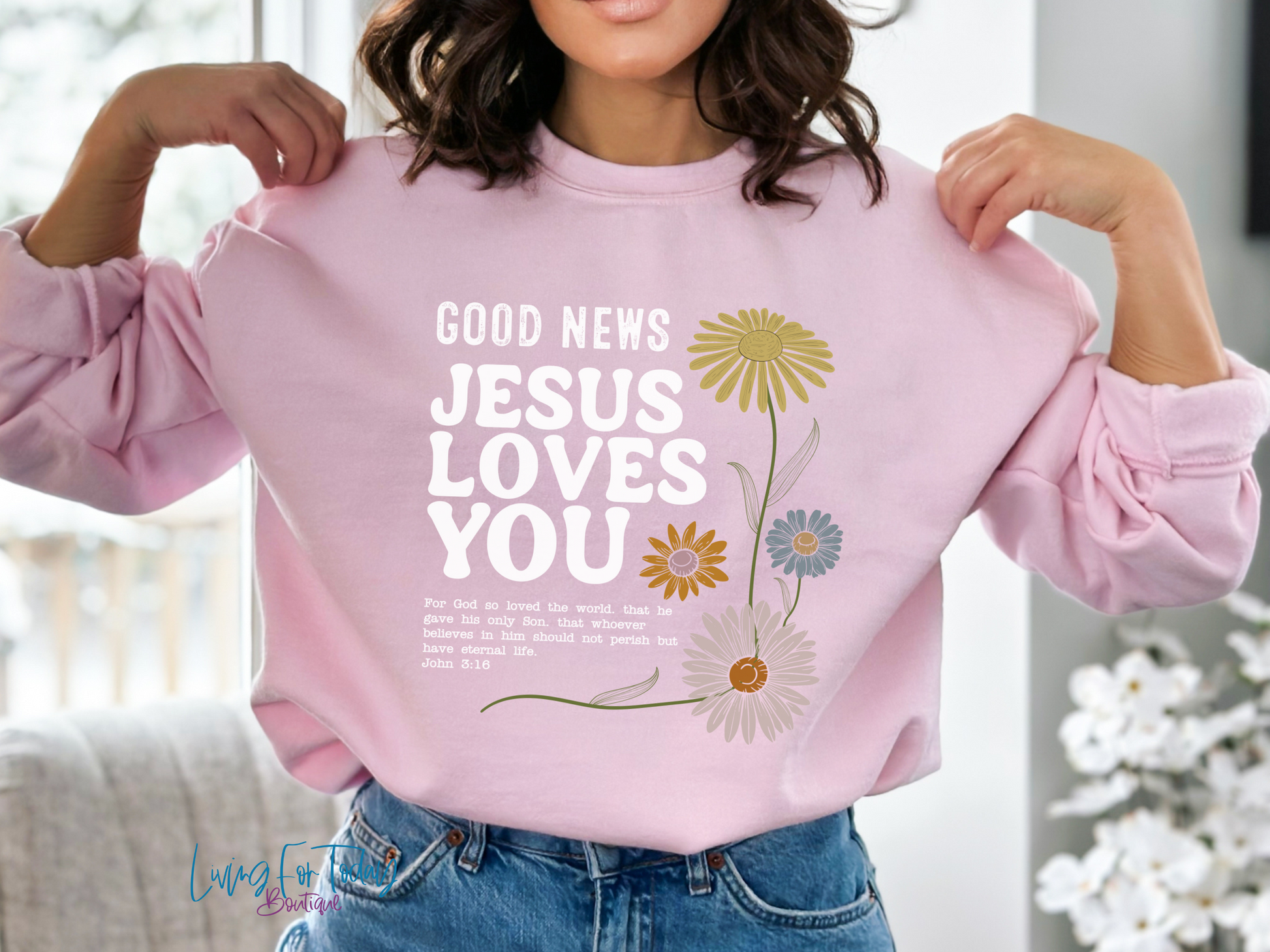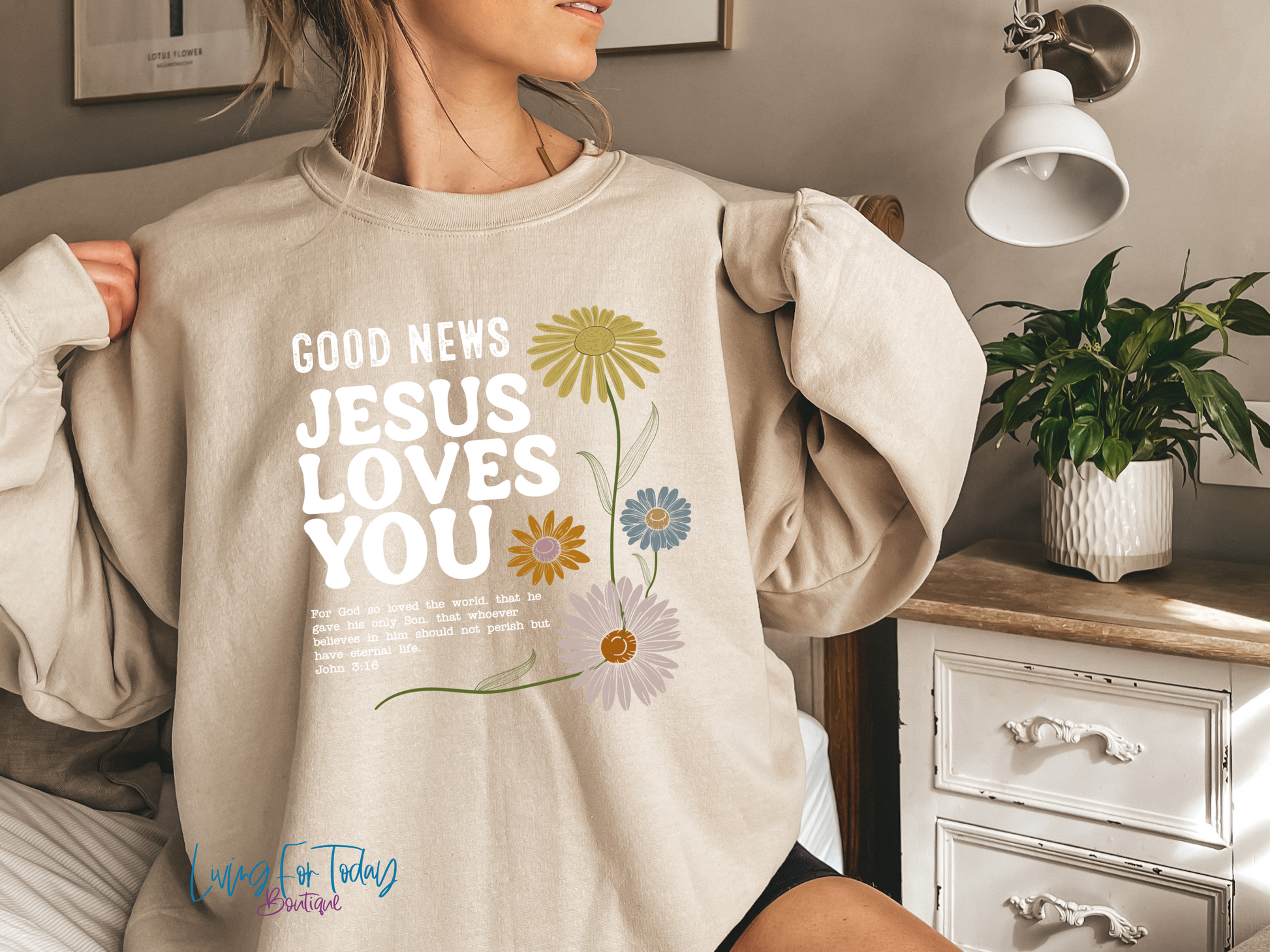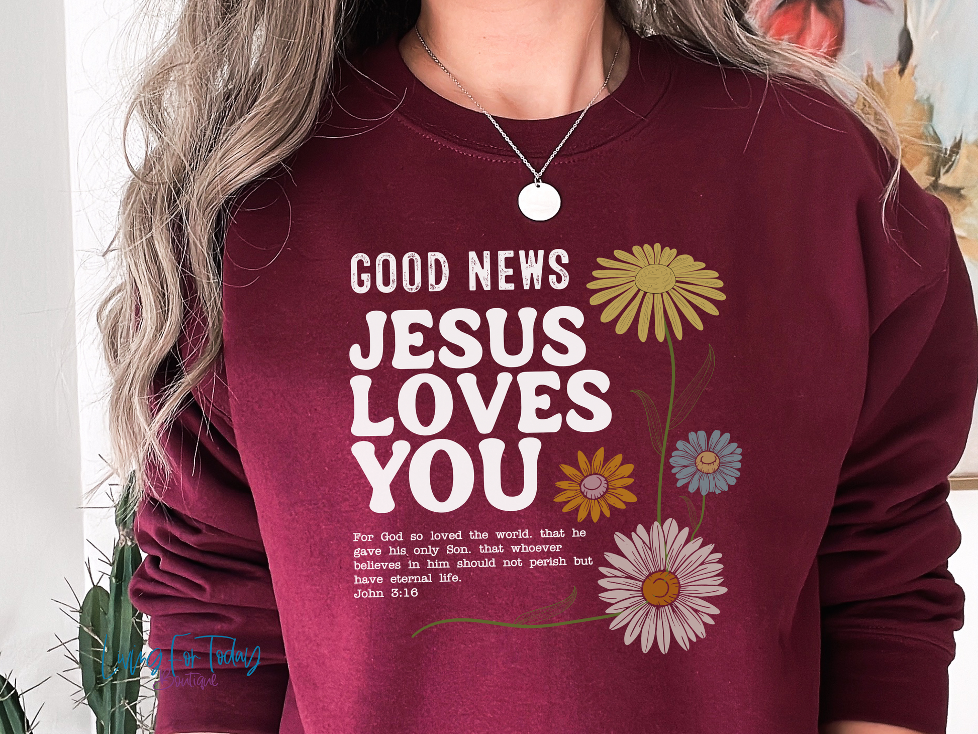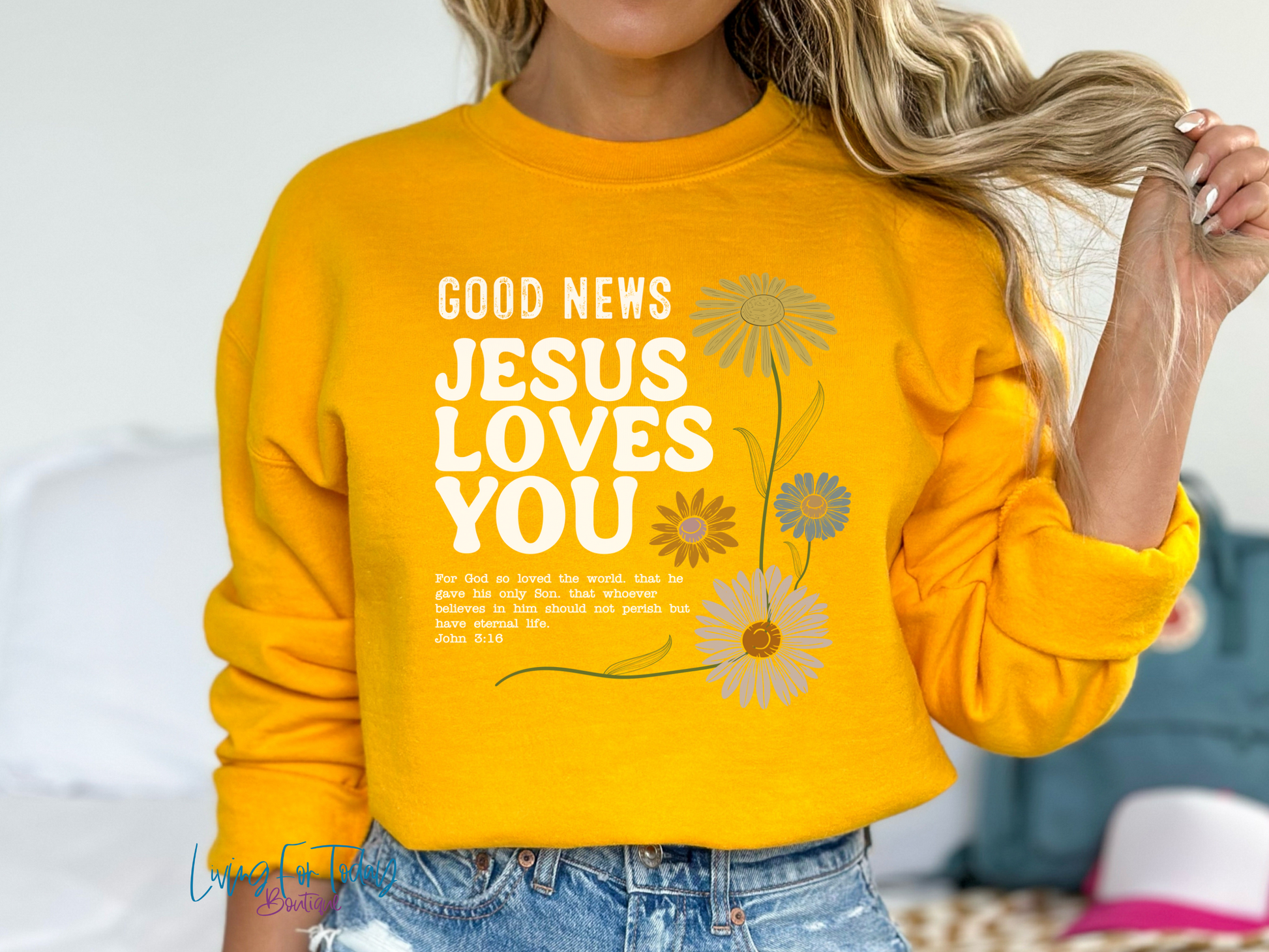 Get ready for some good news with our Good News Sweatshirt! Made with soft, comfortable fabric, this sweatshirt is perfect for everyday wear. The Good News feature provides a positive and uplifting message, giving you a boost of motivation and positivity throughout the day. Stay cozy and spread good vibes with this sweatshirt.
