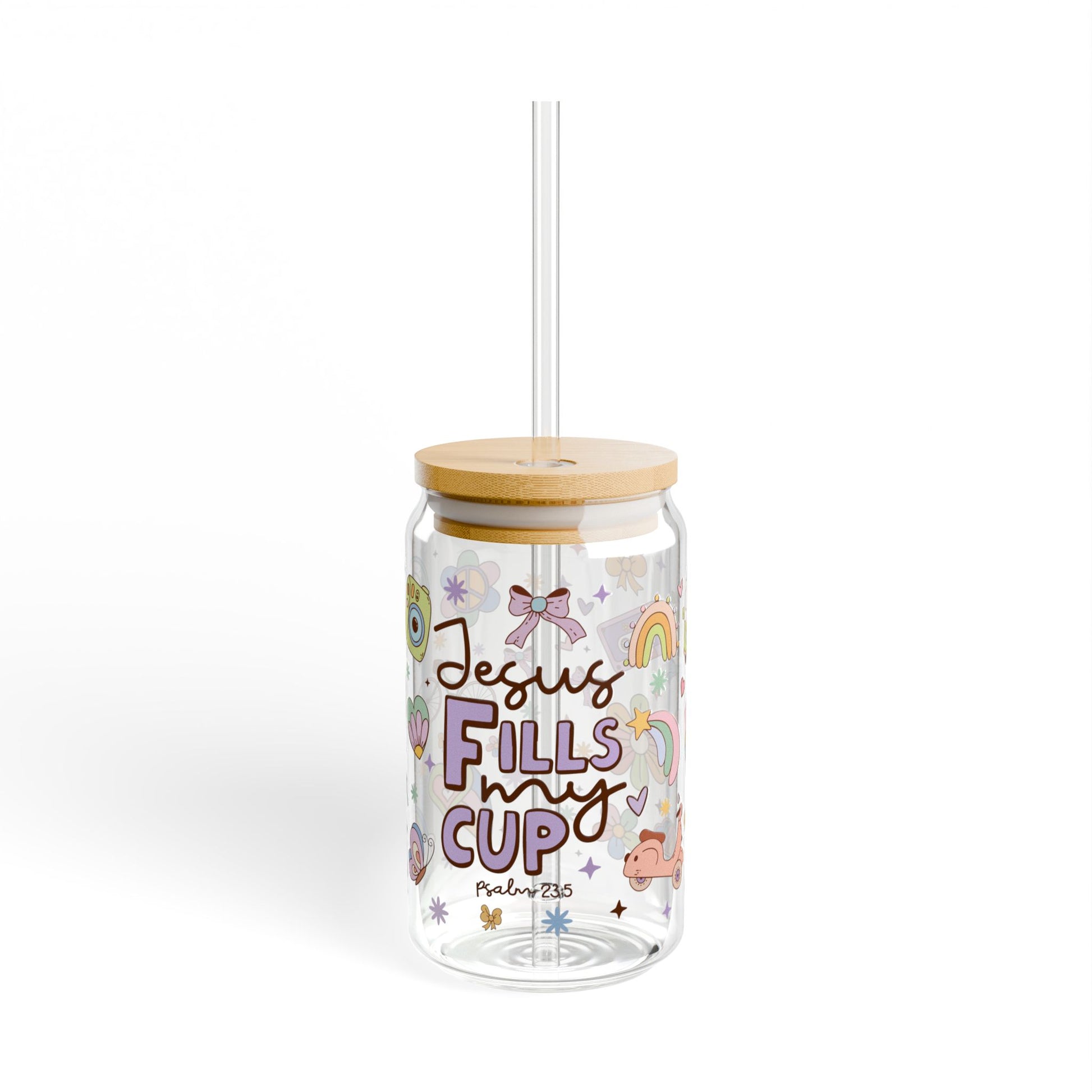Quench your thirst and your soul with the Jesus Fills My Cup Sipper Glass! This 16oz glass features the message "Jesus fills my cup" to remind you of the blessings in life. With every sip, feel a sense of fulfillment and joy in your faith. Cheers to Jesus!