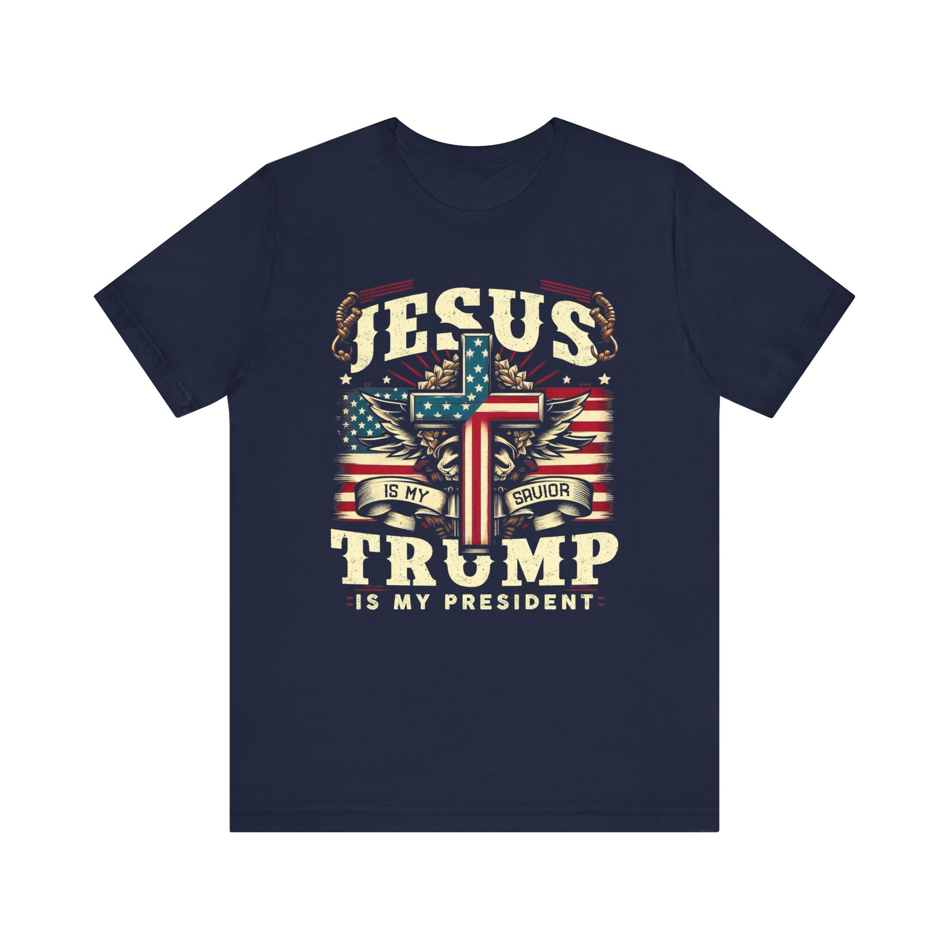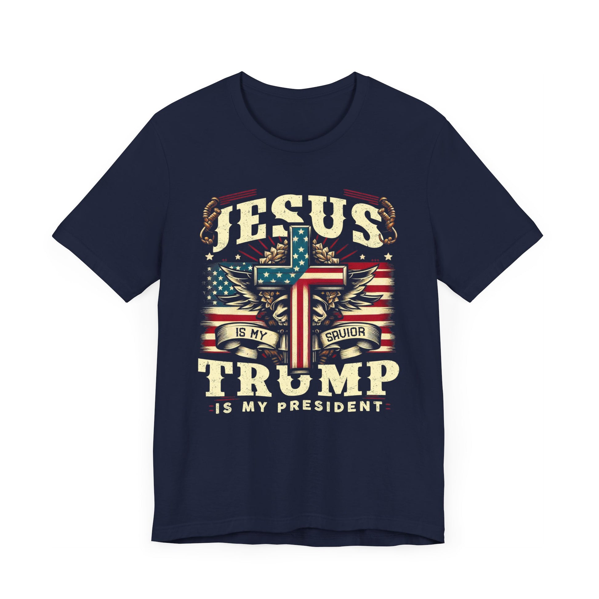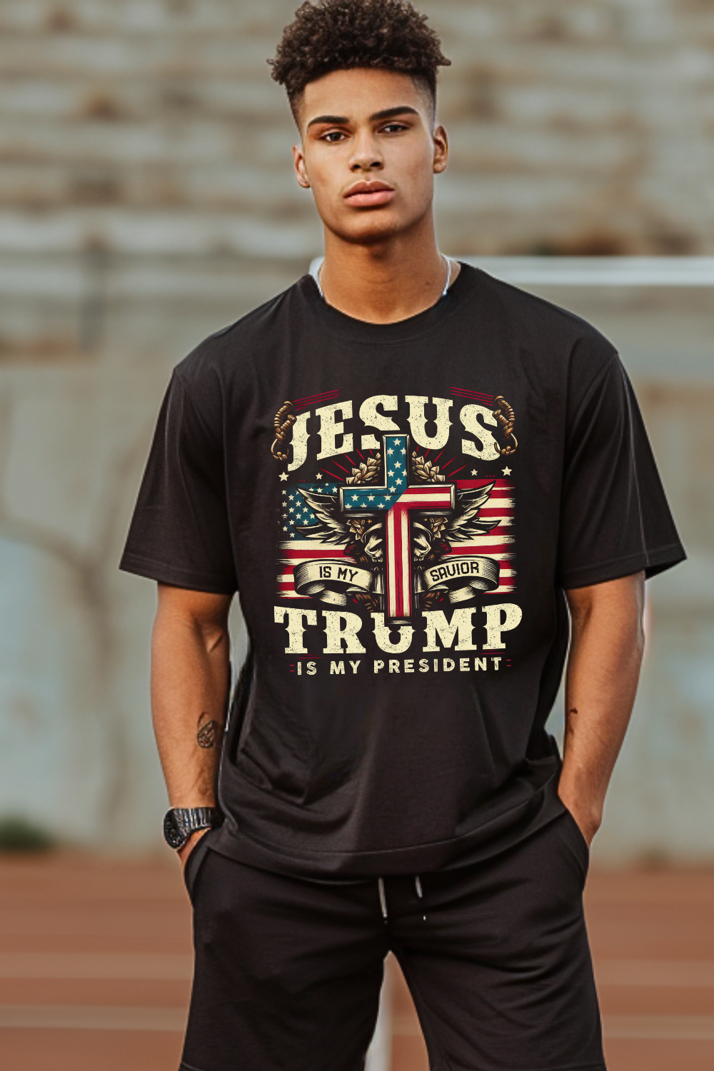 Show your support for both Jesus and President Trump with this quirky tshirt. Perfect for believers and political enthusiasts alike, this shirt is a playful way to express your faith and political views. (Pun not intended. Okay, maybe a little.)