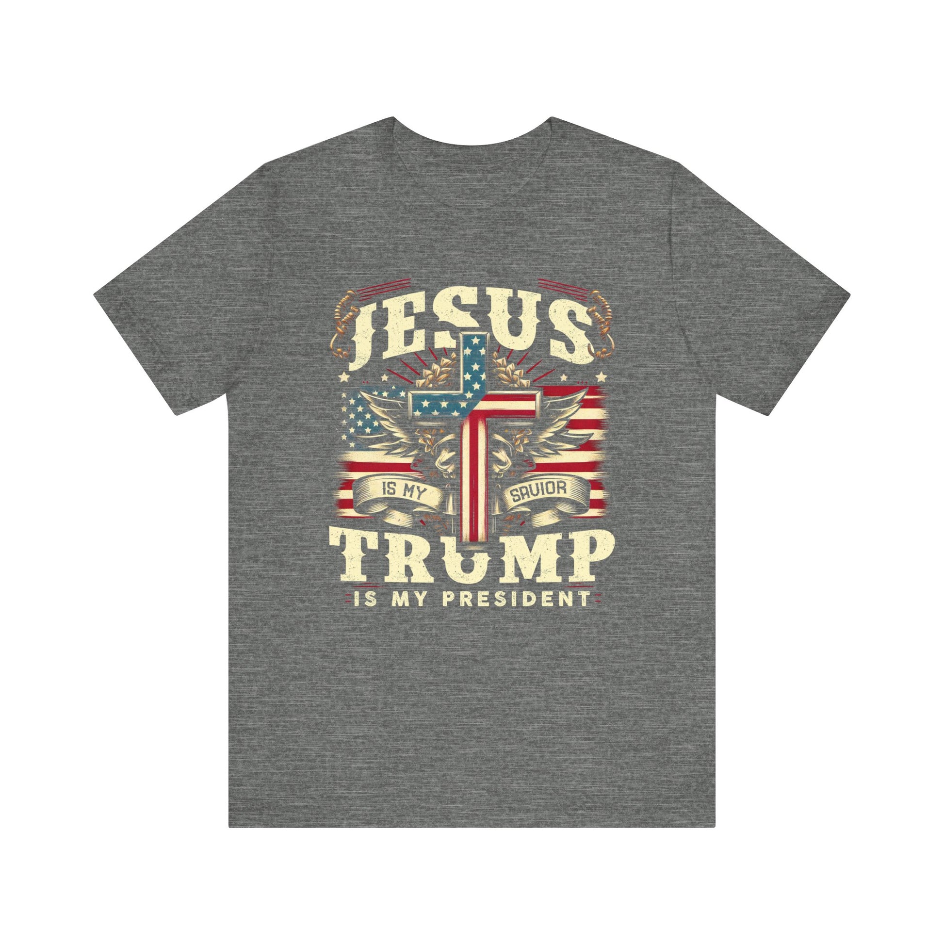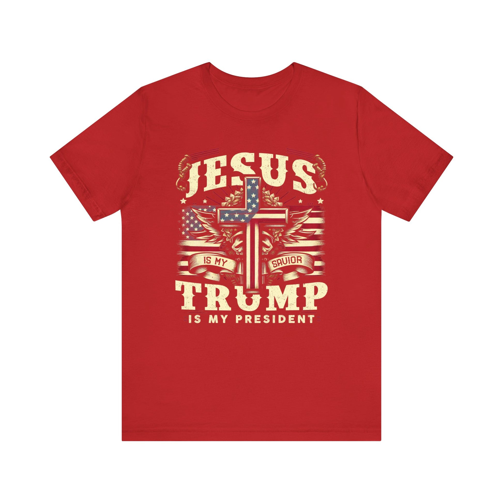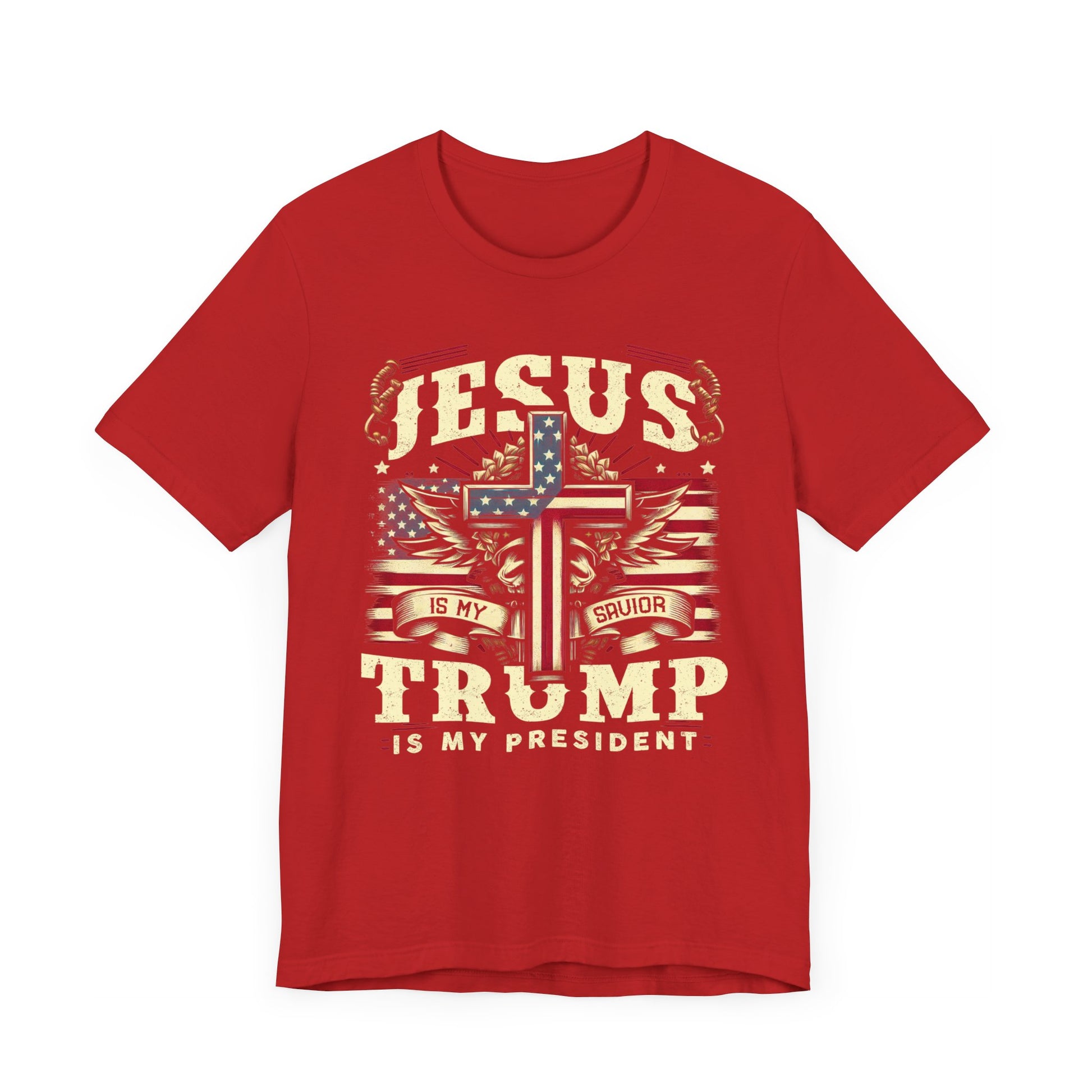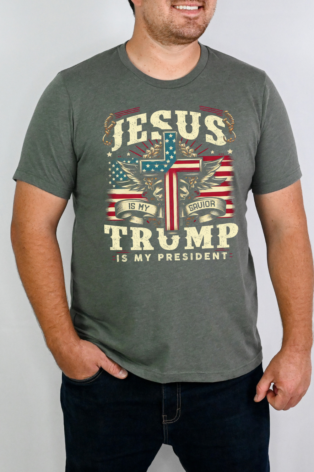 Show your support for both Jesus and President Trump with this quirky tshirt. Perfect for believers and political enthusiasts alike, this shirt is a playful way to express your faith and political views. (Pun not intended. Okay, maybe a little.)