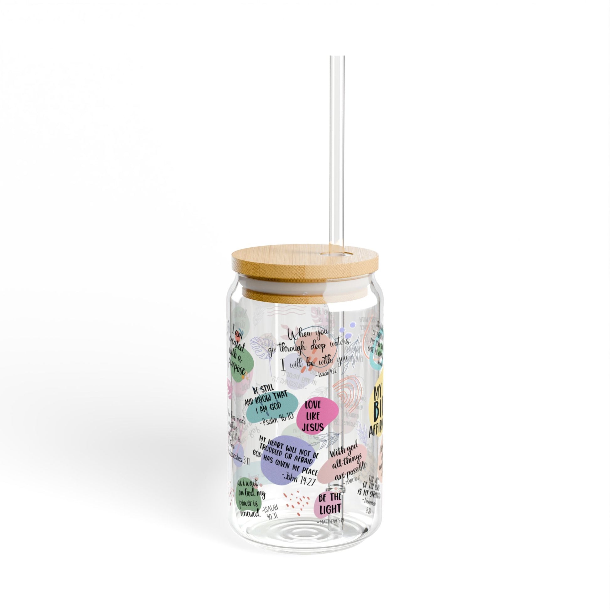 Fuel your soul and body with our My Daily Bible Affirmations Sipper Glass! This 16oz glass features daily affirmations straight from the Bible, reminding you of your worth and purpose. Sip on positive vibes and stay hydrated throughout the day. Amen to that!