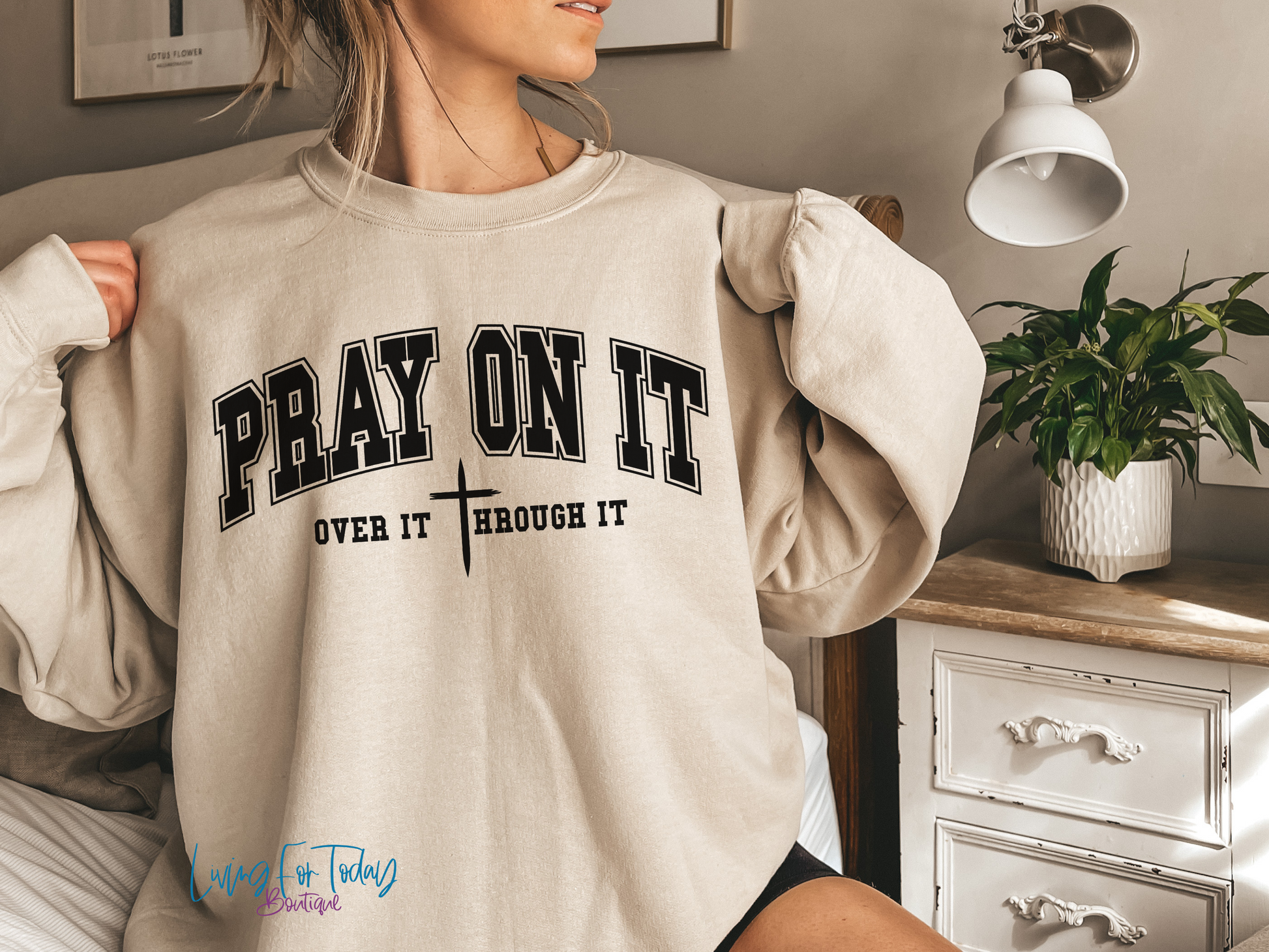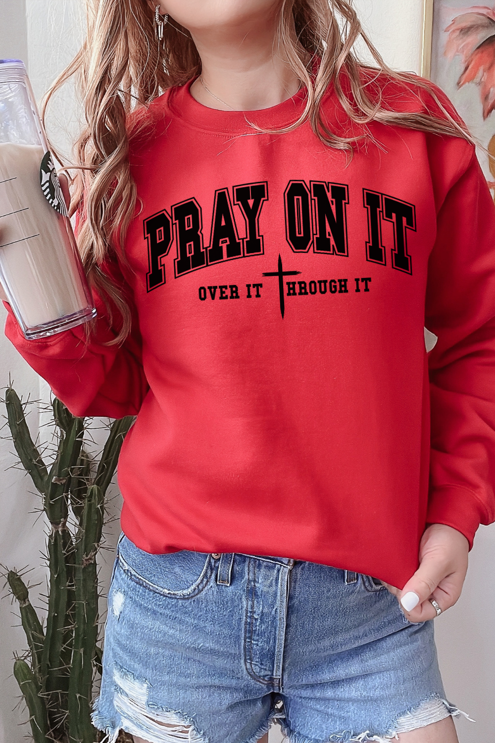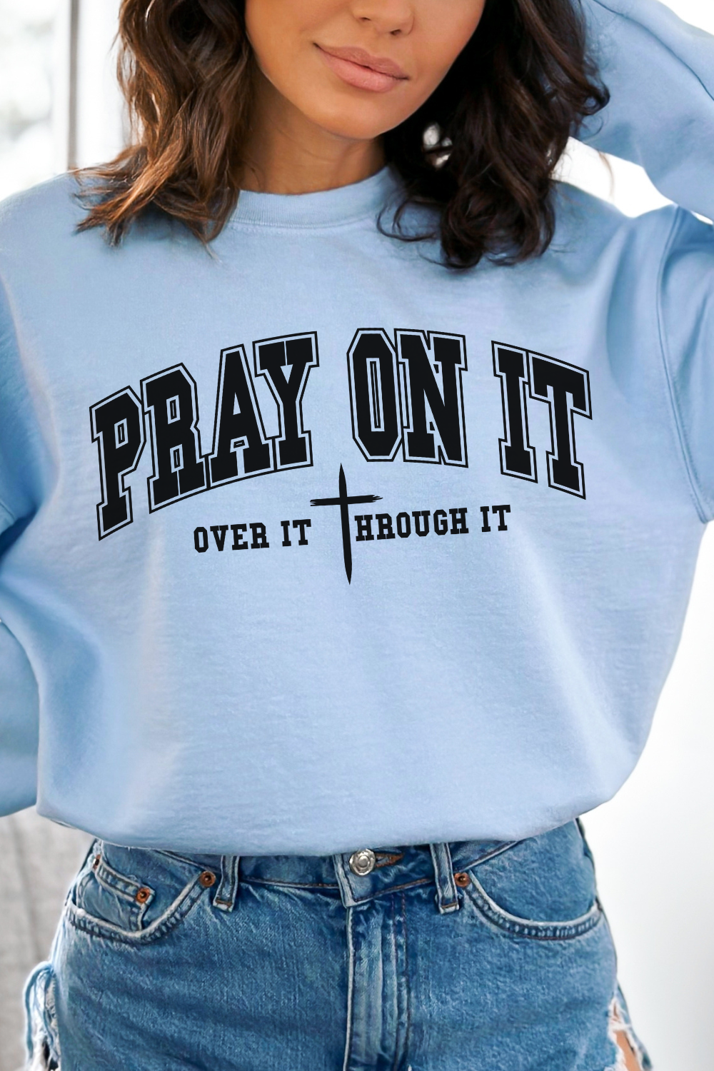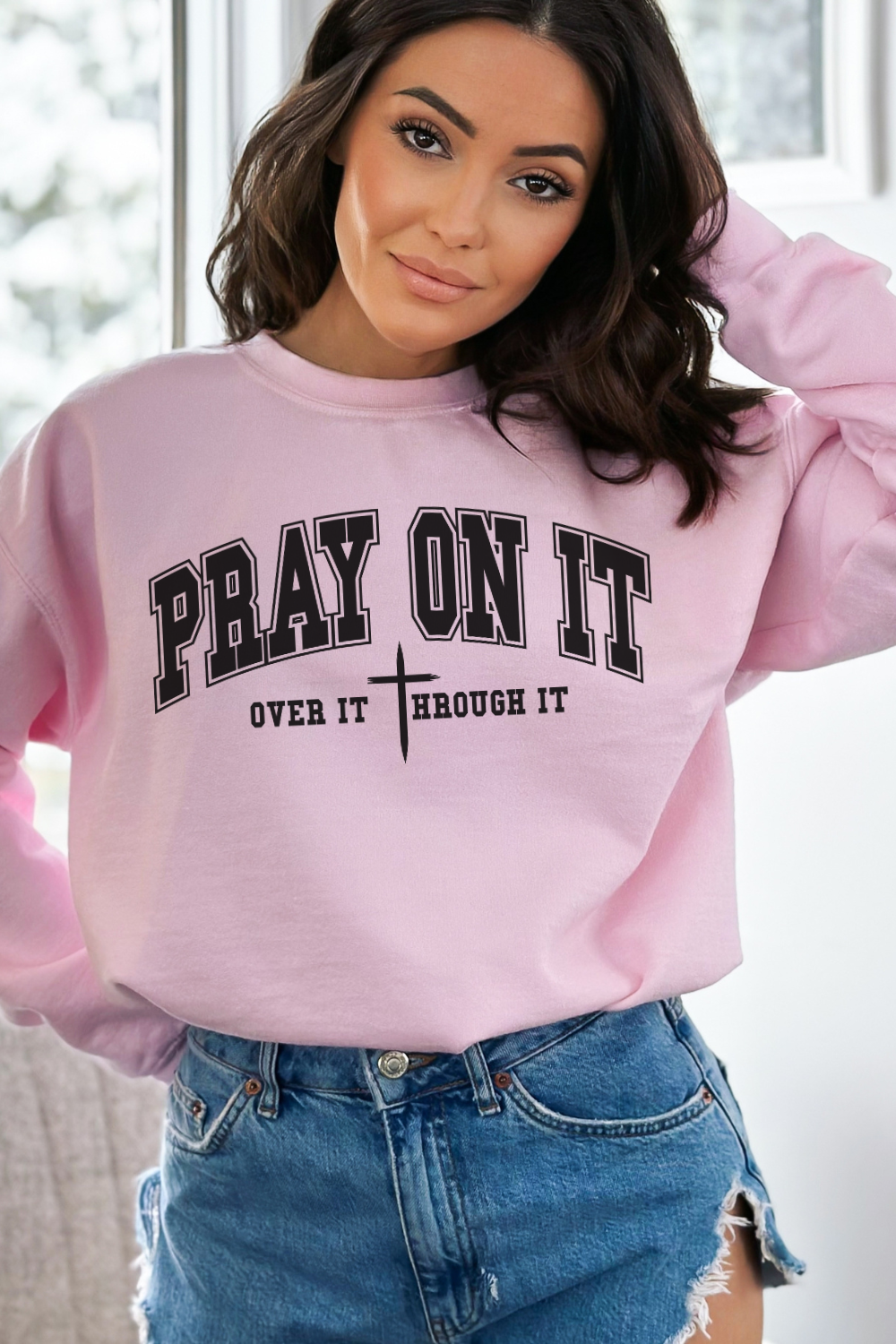 Let your faith guide you with our Pray On It Sweatshirt. Made with high-quality fabric and a comfortable fit, this sweatshirt is perfect for any occasion. Feel empowered and inspired every time you wear it - a reminder to always pray through it all!!