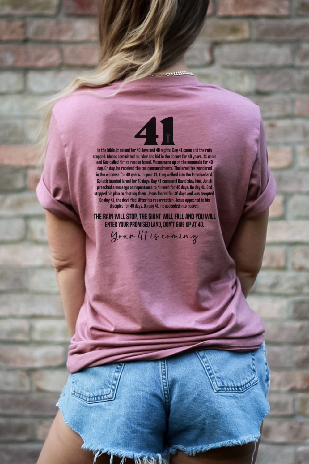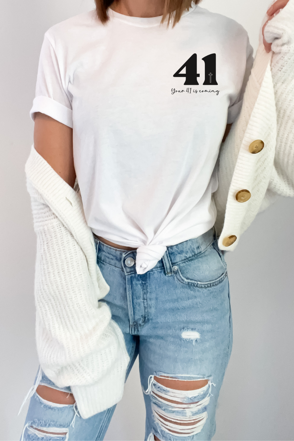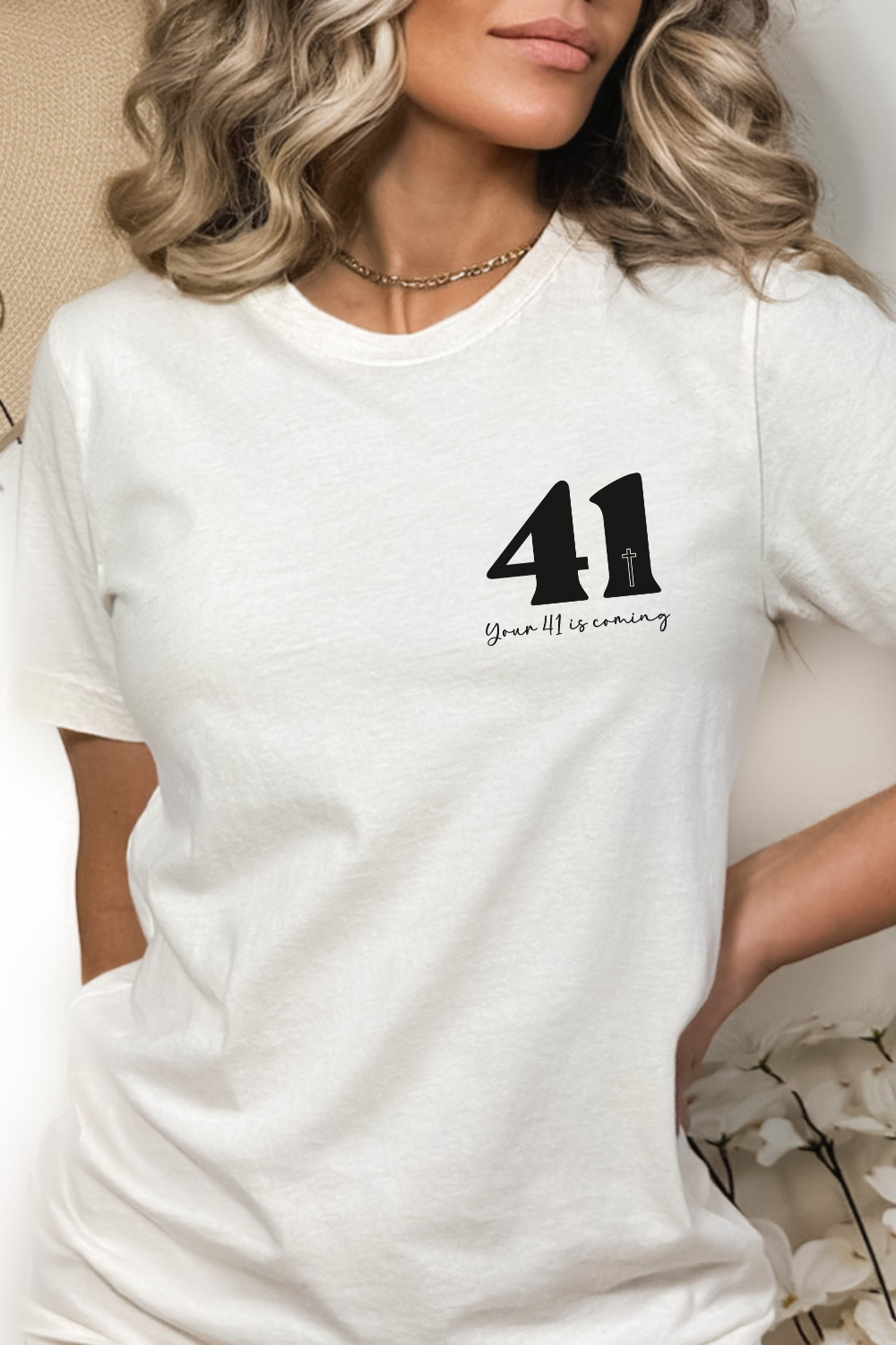 Looking for a way to motivate and inspire loved ones? Our "Your 41 is Coming" tshirt is the perfect option. With its message of encouragement and hope, it's a great reminder that better days are ahead. So whether it's a tough time or just a rough day, this shirt offers a supportive and uplifting message to remind you that God got you.