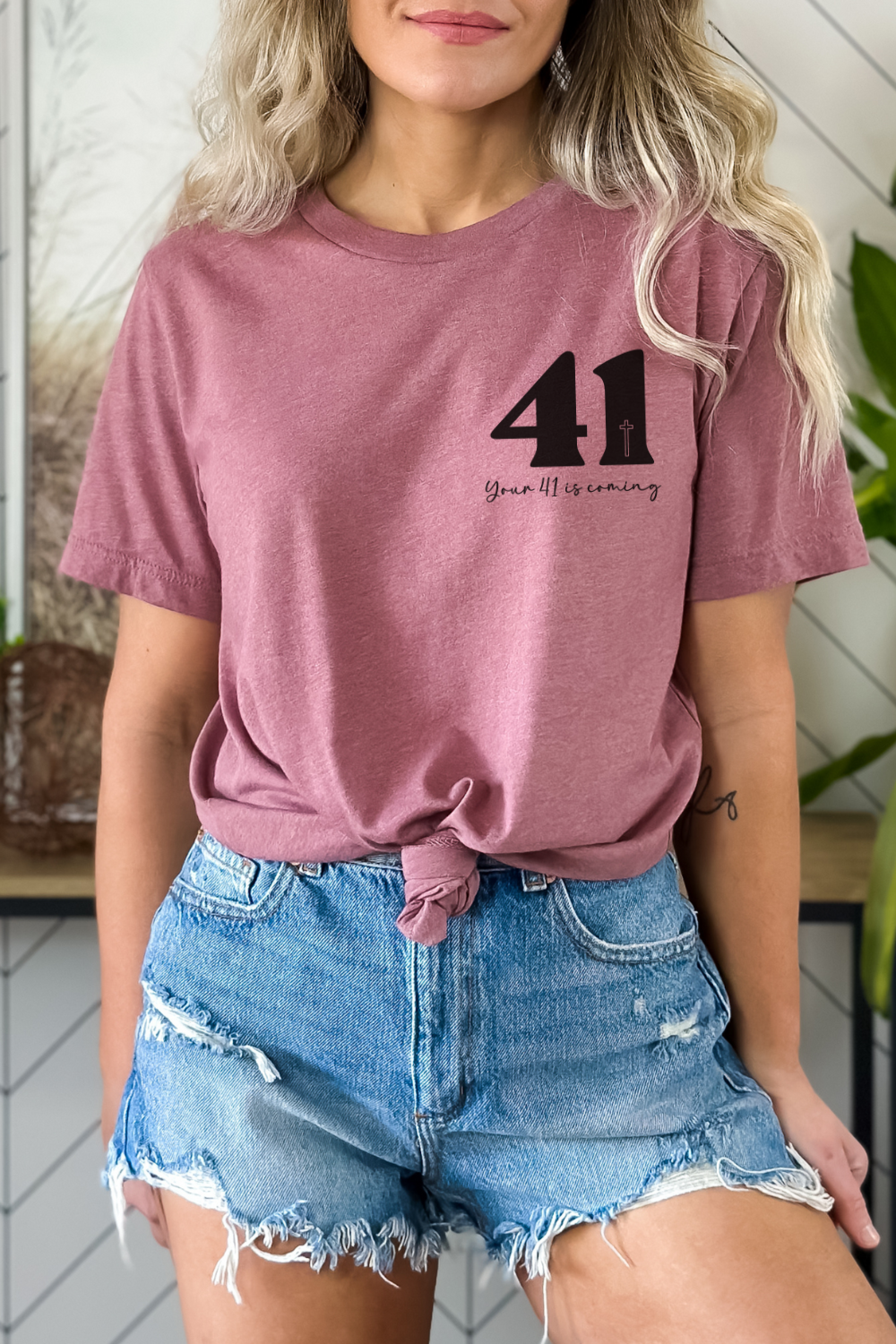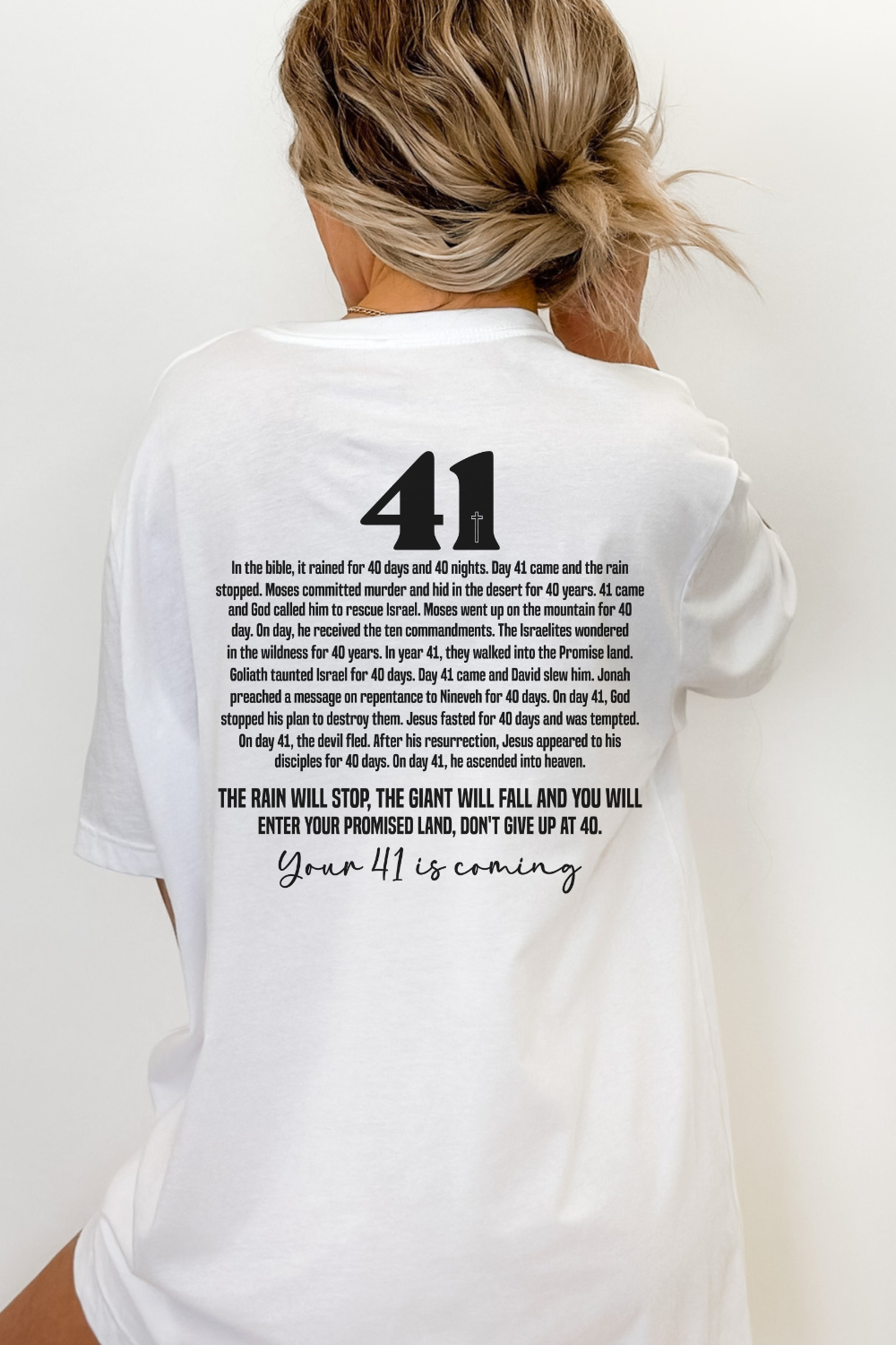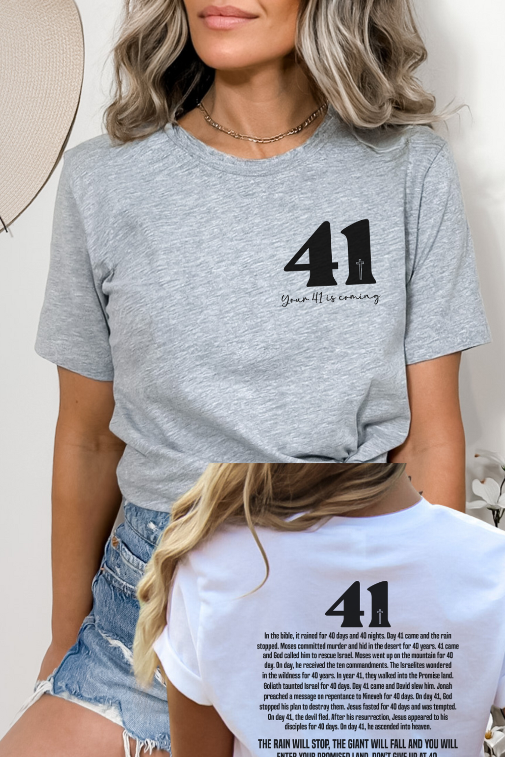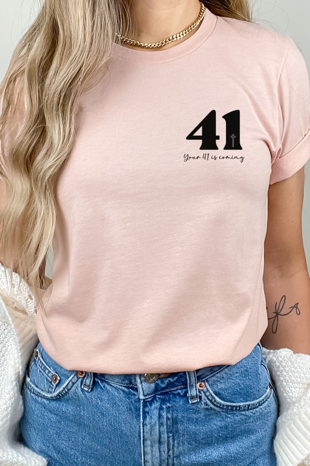 Looking for a way to motivate and inspire loved ones? Our "Your 41 is Coming" tshirt is the perfect option. With its message of encouragement and hope, it's a great reminder that better days are ahead. So whether it's a tough time or just a rough day, this shirt offers a supportive and uplifting message to remind you that God got you.