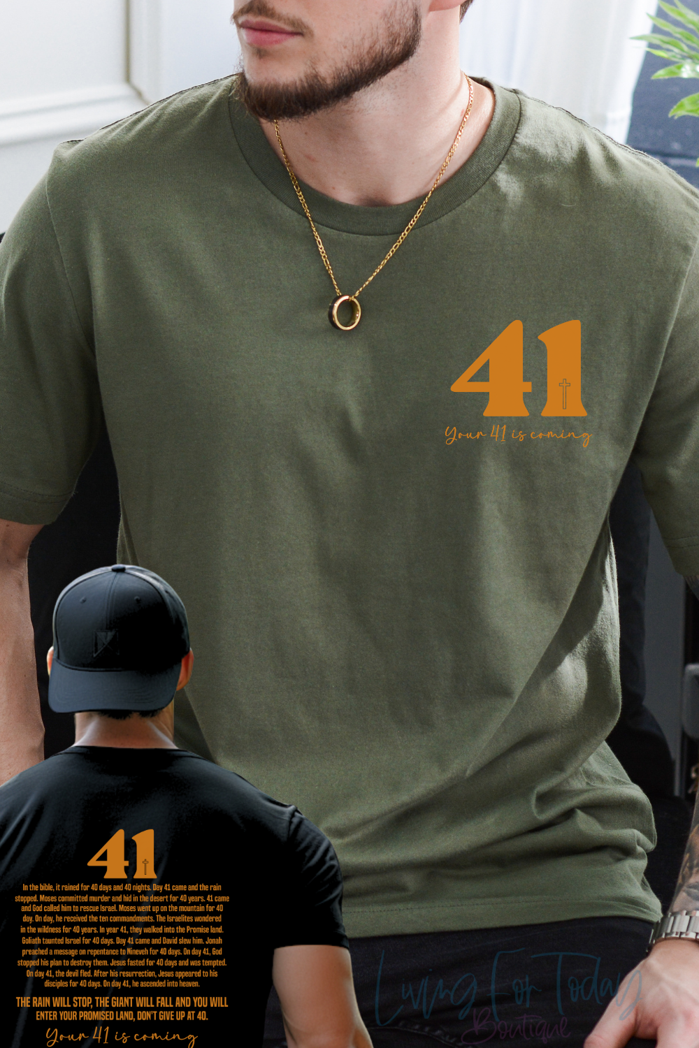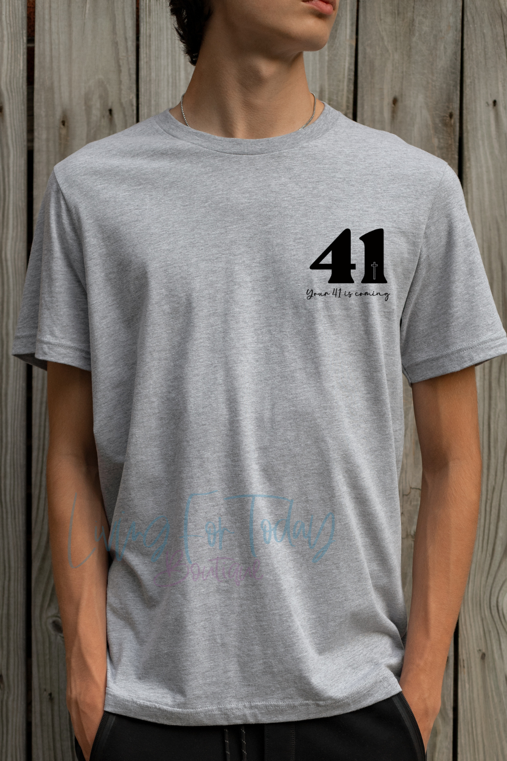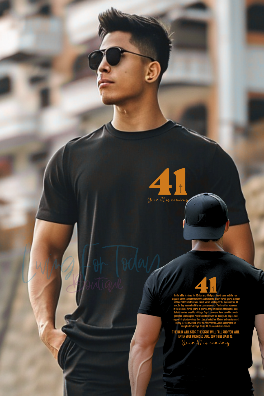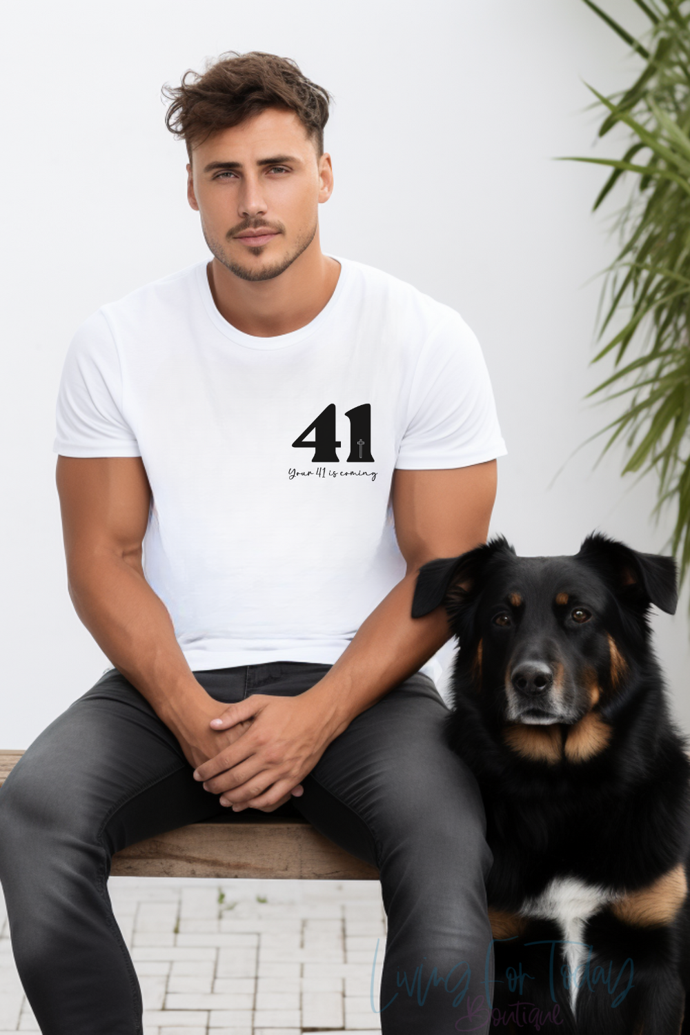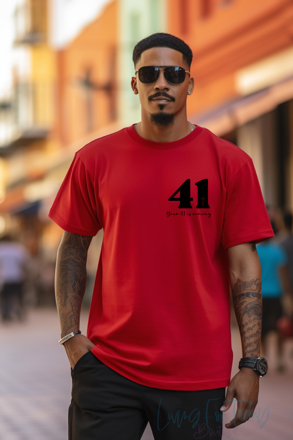 Looking for a way to motivate and inspire loved ones? Our "Your 41 is Coming" tshirt is the perfect option. With its message of encouragement and hope, it's a great reminder that better days are ahead. So whether it's a tough time or just a rough day, this shirt offers a supportive and uplifting message to remind you that God got you.